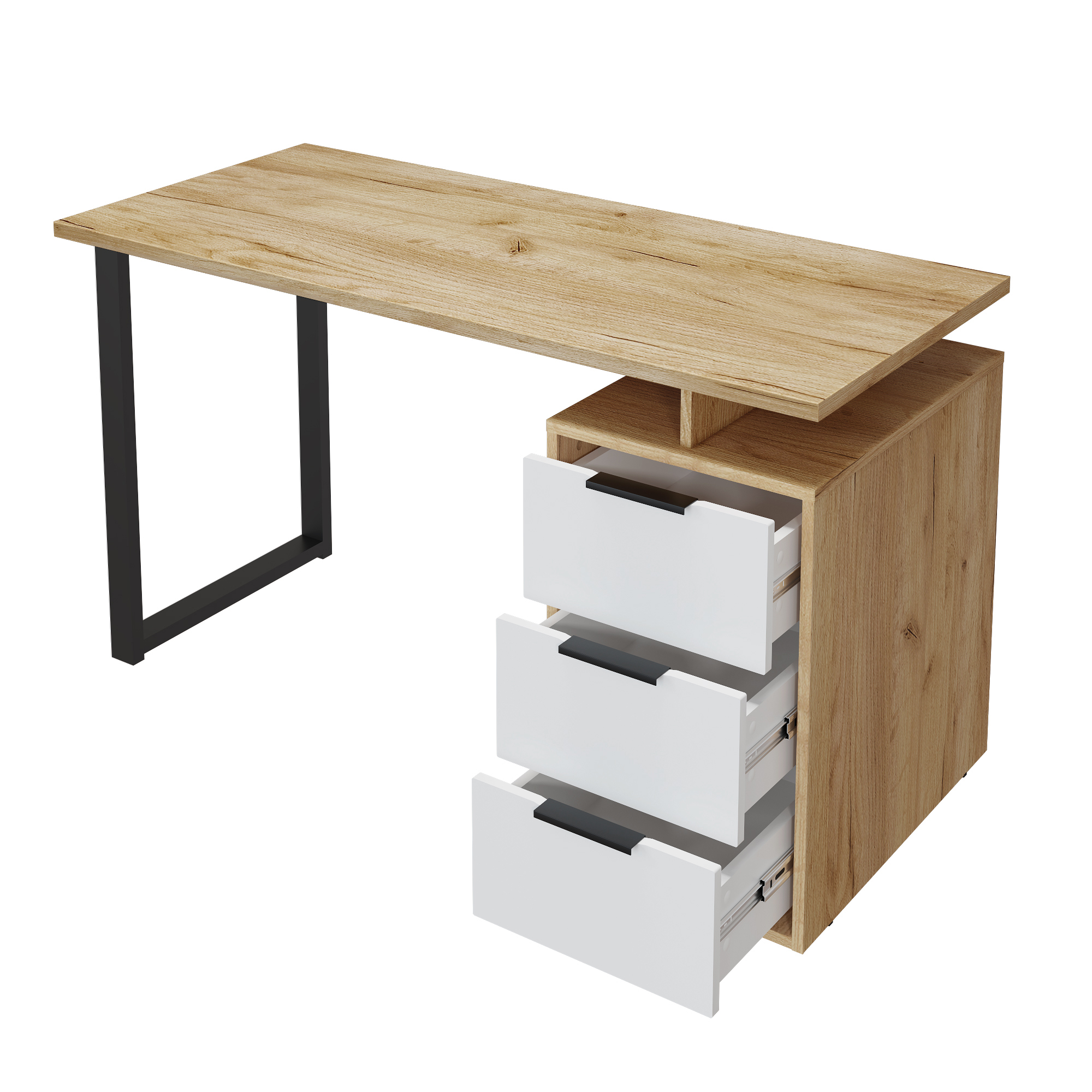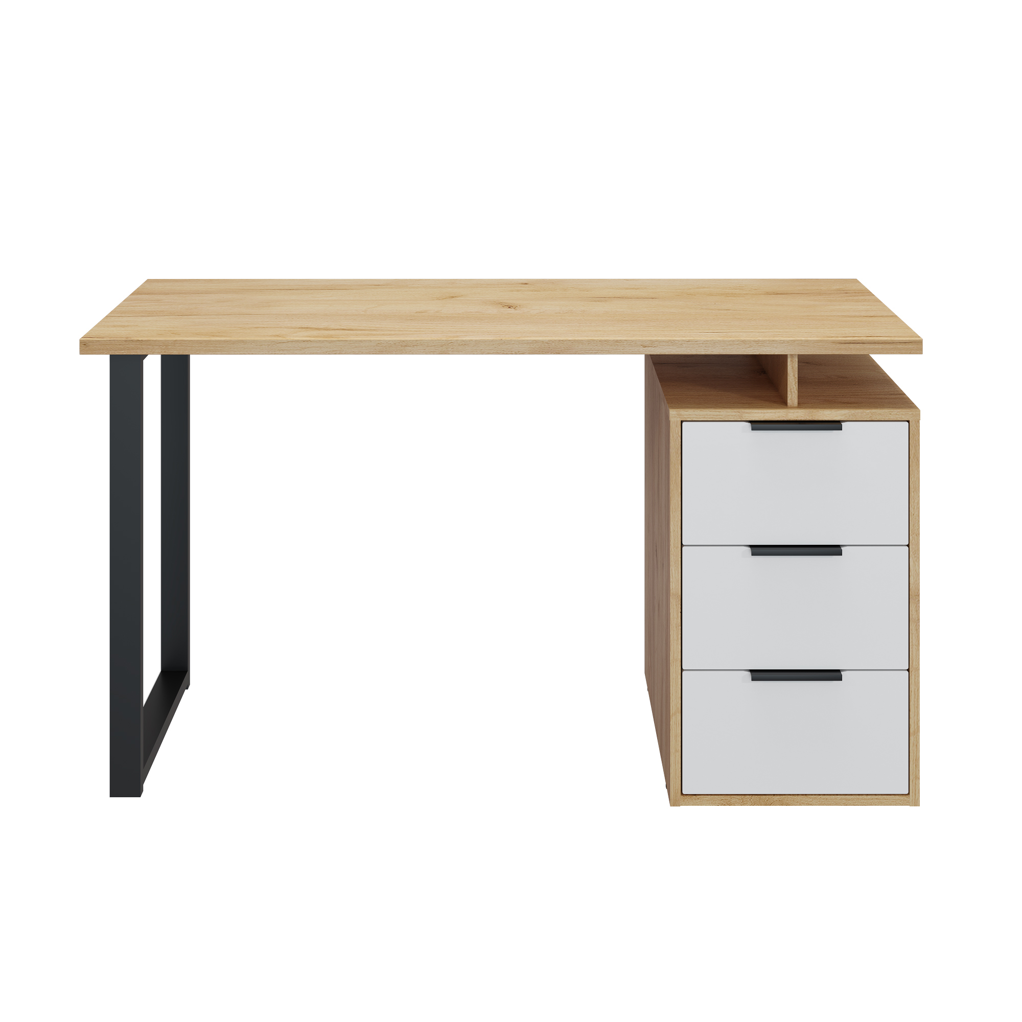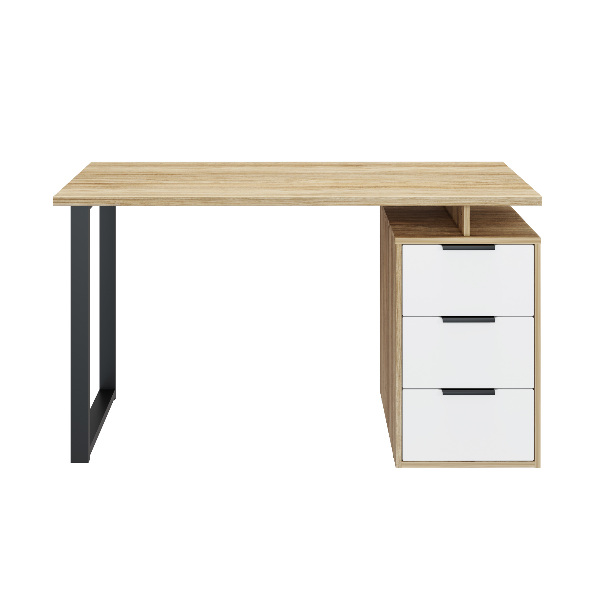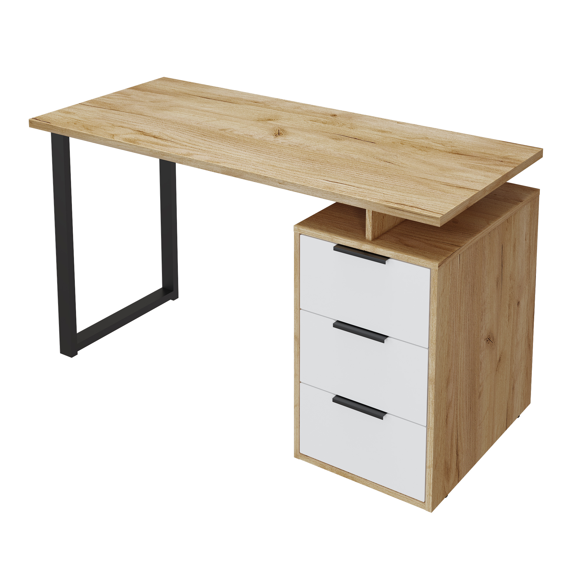 Стол письменный, компьютерный С-406 позволит создать комфортное и стильное рабочее пространство в офисе или домашнем кабинете.. Стол имеет прочную стальную опору и тумбу с тремя выдвижными ящиками и полкой для мелочей Столешница изготовлена из ЛДСП 25 мм, фасады МДФ 16 мм. Дно ящика двп 3 мм. Стол может быть собран в зеркальном варианте «правым» или «левым». Фурнитура: телескопические направляющие полного выдвижения без доводчиков, ручки и опора металл.