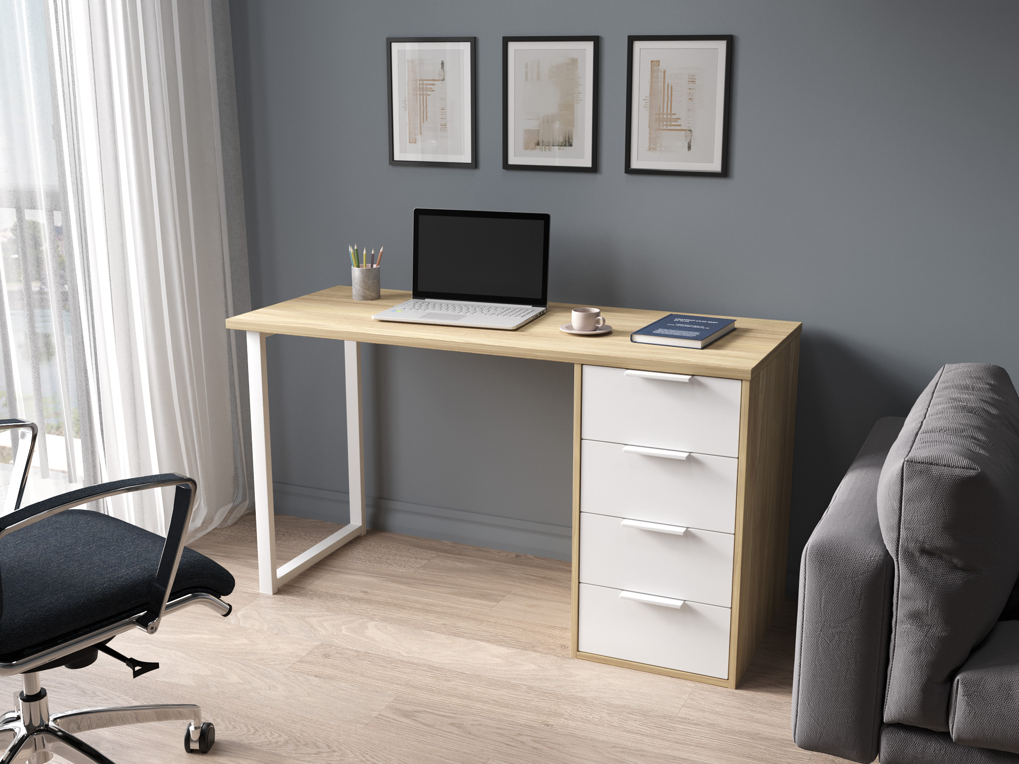 Стол компьютерный, письменный С-412 - это идеальное решение как для большого пространства, так и для небольшой комнаты. Стол прямой обеспечивает максимальную вместительность и удобство использования. Стол оснащен стильной металлической опорой. Четыре выдвижные ящика - вместительны и комфортны в расположении. Не нужно никуда вставать, за важными документами или вещами, достаточно расположить все рядом с собой! Стол может быть собран в зеркальном варианте «правым» или «левым». Столешница изготовлена из ЛДСП 25 мм, фасады МДФ 16 мм. Дно ящика ДВП 3 мм. Фурнитура: ручки, опора металл, телескопические направляющие полного выдвижения без доводчиков.