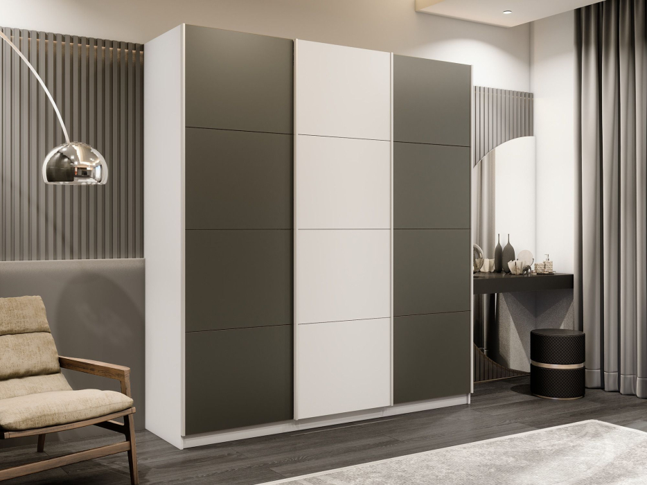 Отзывы о Столплит Шкаф-купе Прайм 3-х дверный Стекла хаки/ДСП/Доводчики 180х57х230 Белый снег