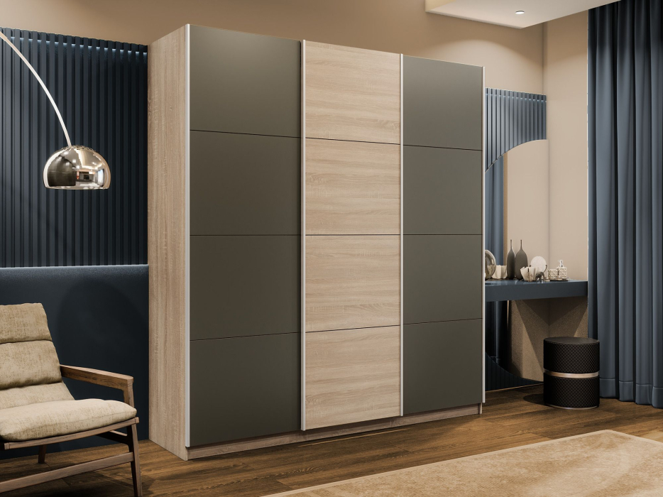 Отзывы о Столплит Шкаф-купе Прайм 3-х дверный Стекла хаки/ДСП/Доводчики 210х57х230 Дуб сонома