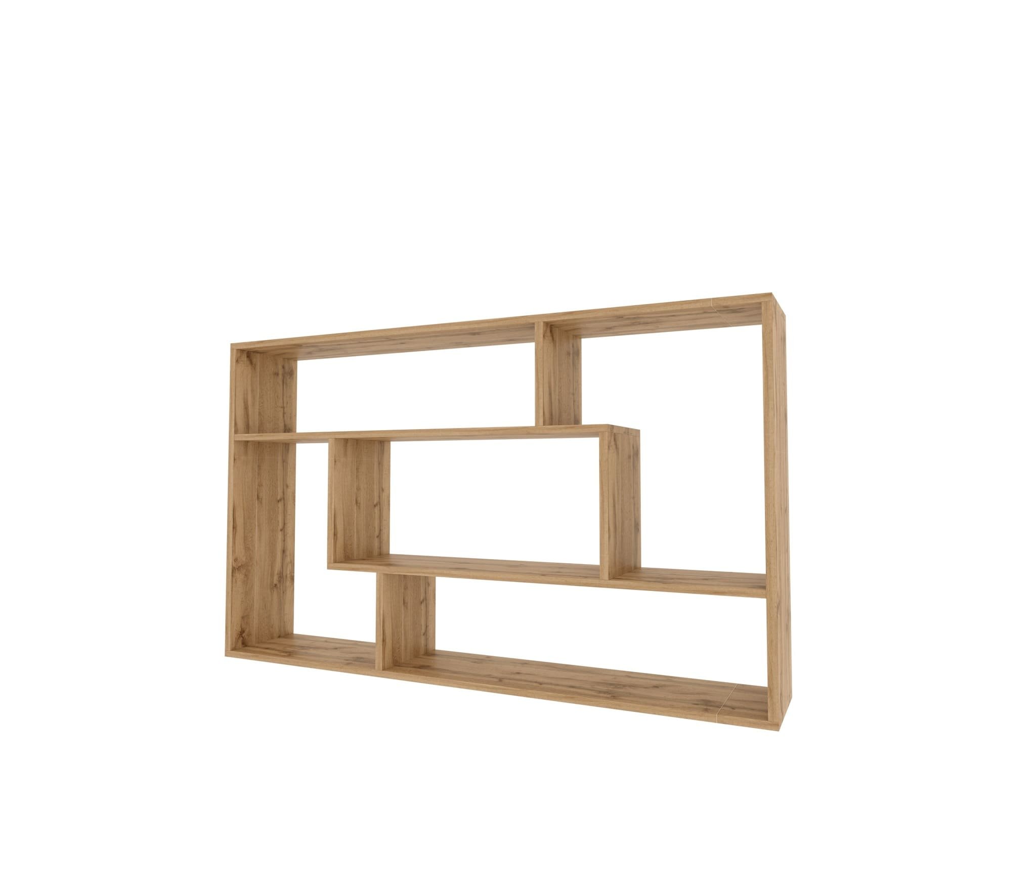 Полка настенная П-5 изготовлена из ламинированной ДСП 16 мм..Высотой 800 мм,шир 1150 мм и глуб 200 мм имеет 5 отсеков различной формы для хранения разных вещей.