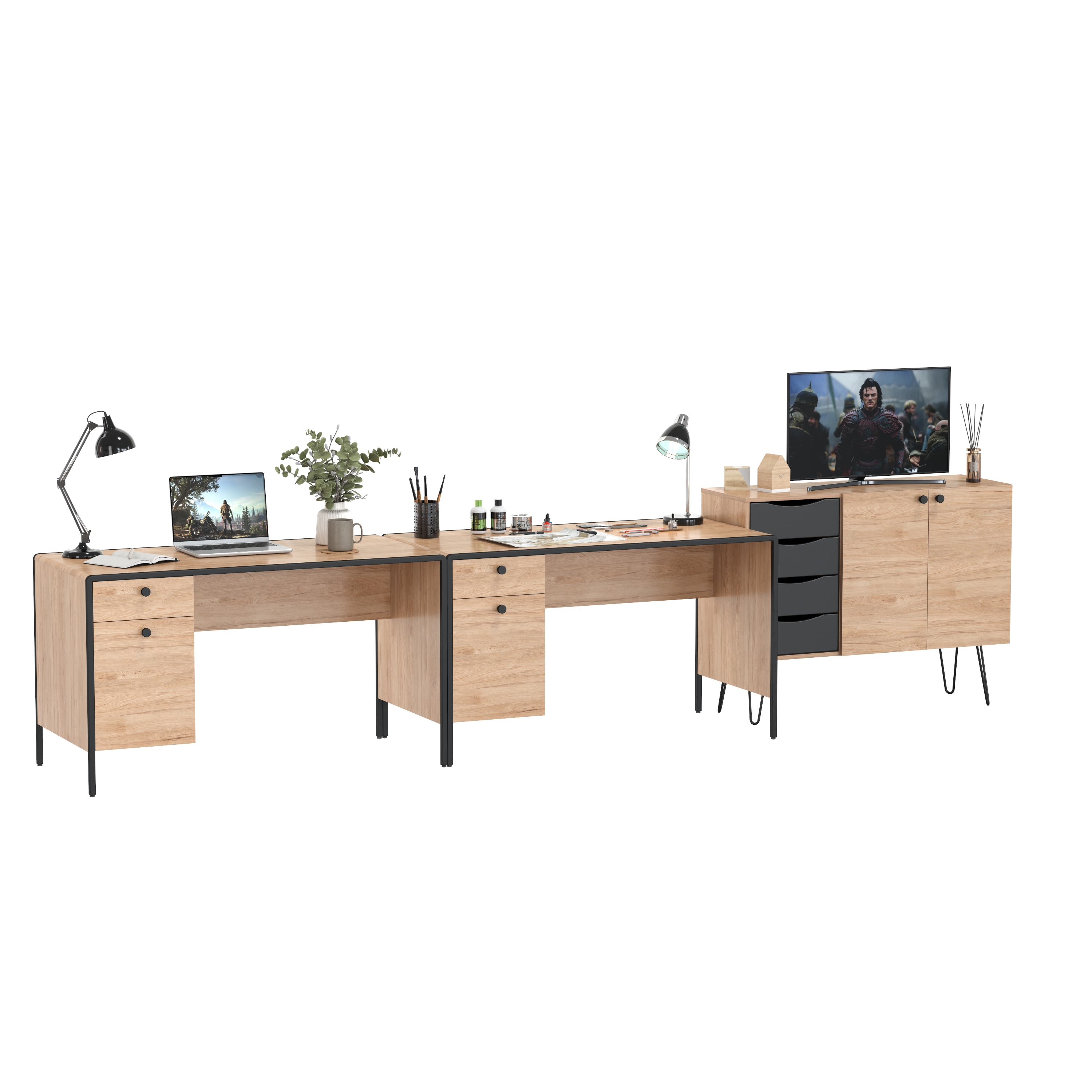 Место для работы и учёбы двоих людей Брюс из двух столов и двух комодов-тумб - идеальное решение для стильного и комфортного пространства!