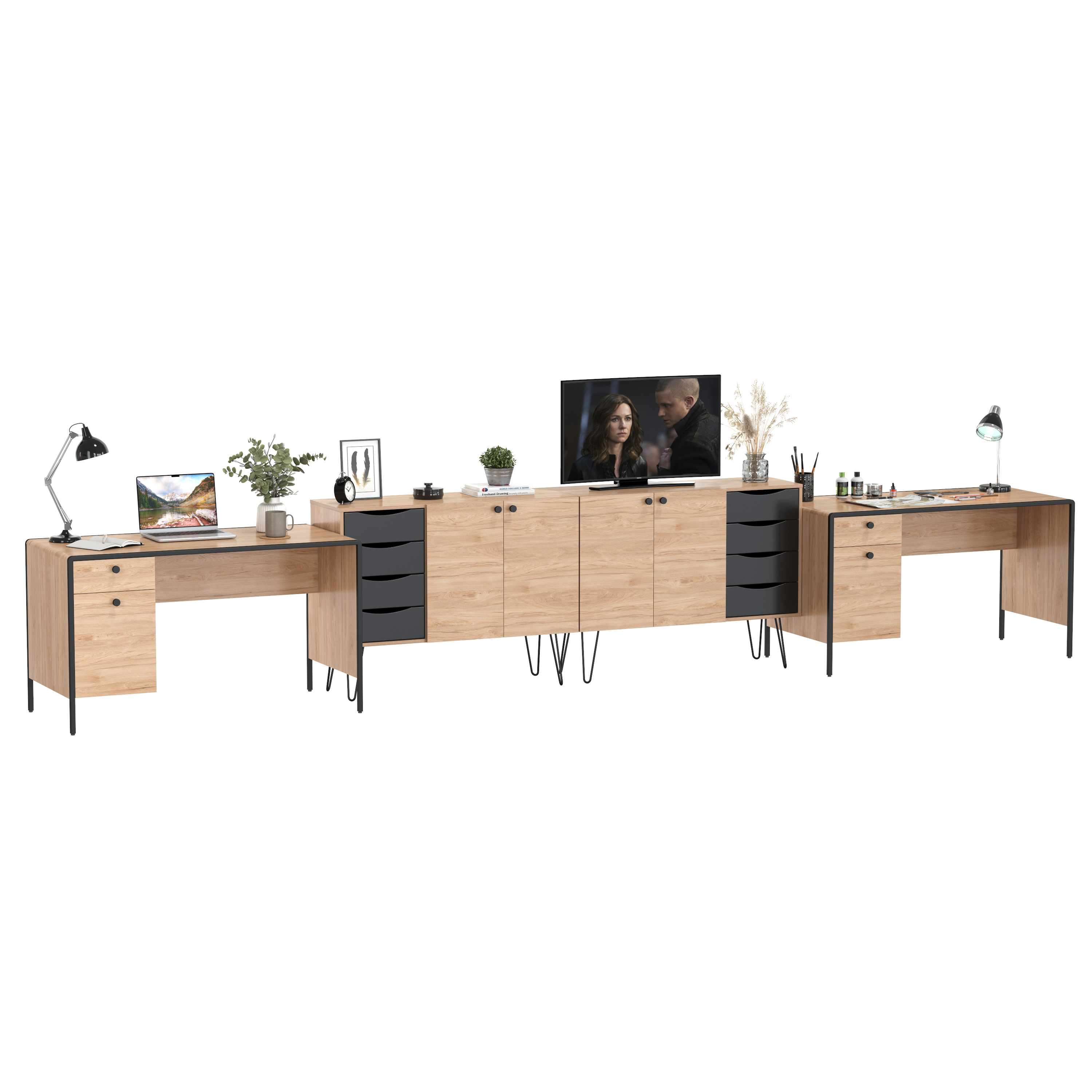 Место для работы и учёбы двоих людей Брюс из двух столов и двух комодов-тумб - идеальное решение для стильного и комфортного пространства!