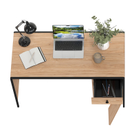 Конструктивно стол оснащён тумбой с дверкой и вместительным ящиком, что позволяет удобно организовать хранение канцелярии и личных вещей. Универсальная сборка стола позволяет установить тумбу как слева, так и справа, подстраивая рабочее пространство под ваши предпочтения. Выдвижной ящик с направляющими полного выдвижения гарантирует удобный доступ и комфортное хранение документов, обеспечивая порядок и аккуратность.