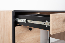 Столешница из МДФ толщиной 19 мм с закруглением не только устойчива к износу, но и добавляет изделию современный вид, а также комфорт при использовании. Прочный металлический каркас стола гарантирует долговечность, а стильный дизайн добавляет эстетики в интерьере. Высокие металлические опоры не только создают визуальную лёгкость, но и позволяют легко убирать под мебелью. Регулируемые металлические опоры позволяют идеально выровнять стол даже на неровном полу, обеспечивая устойчивость и комфорт. Металлические ручки с накаткой обеспечивают тактильный комфорт при использовании и добавляют стильный акцент в дизайне стола.