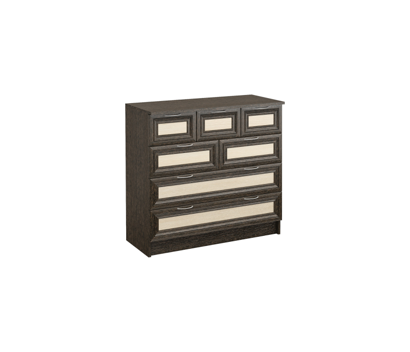 Комод 21 отличается большими размерами и многофункциональностью в использовании.Два нижних ящика больших размеров,остальные 5 размером меньше,что позволяет размещать вещи разной габаритности.Корпус ЛДСП,фасады рамочные МДФ.Производитель оставляет за собой право менять фурнитуру.