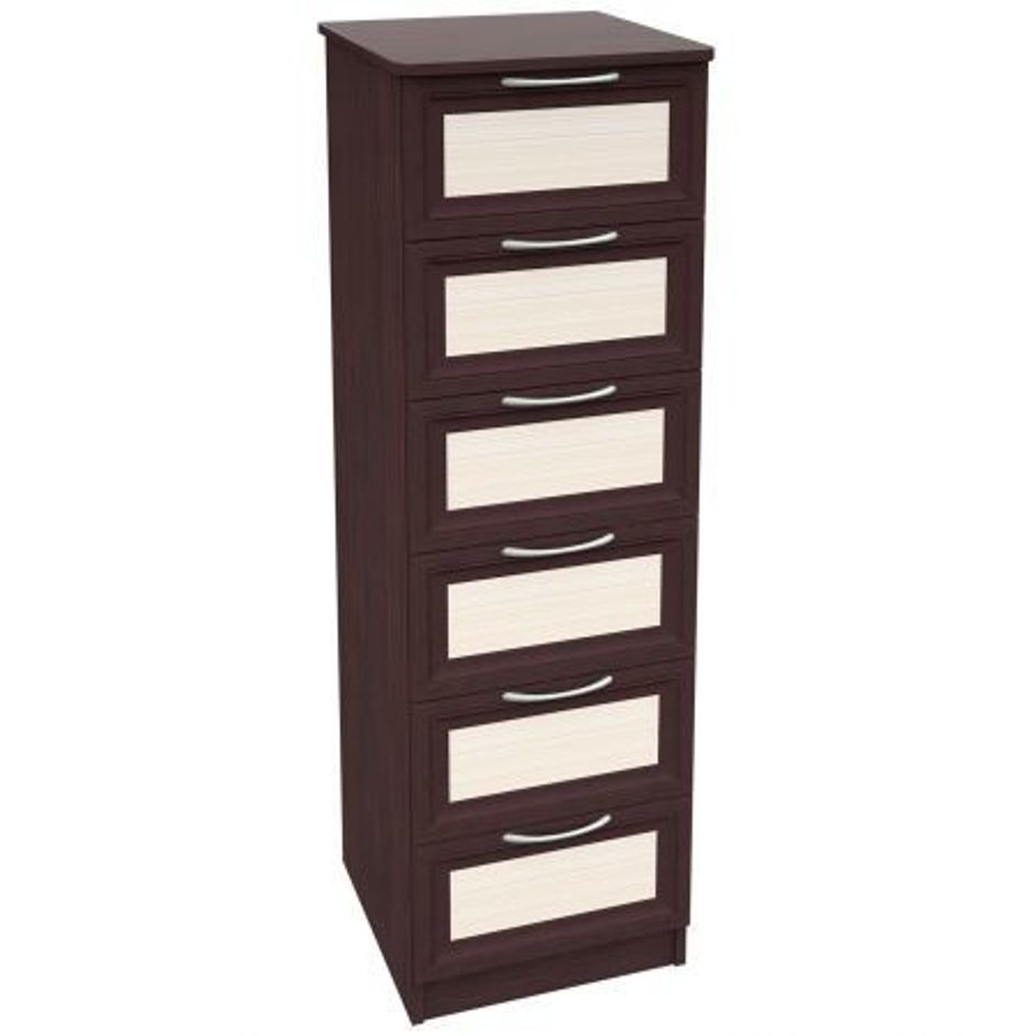 Комод 5 рамка удачно разработан,для маленьких помещений.Ширина всего 43 см,позволяет разместить в любом месте Вашего дома.А 6 выдвижных ящиков,помогут разместить множество разных вещей.Корпус из ЛДСП,фасады рамочные МДФ.Производитель оставляет за собой право менять фурнитуру.