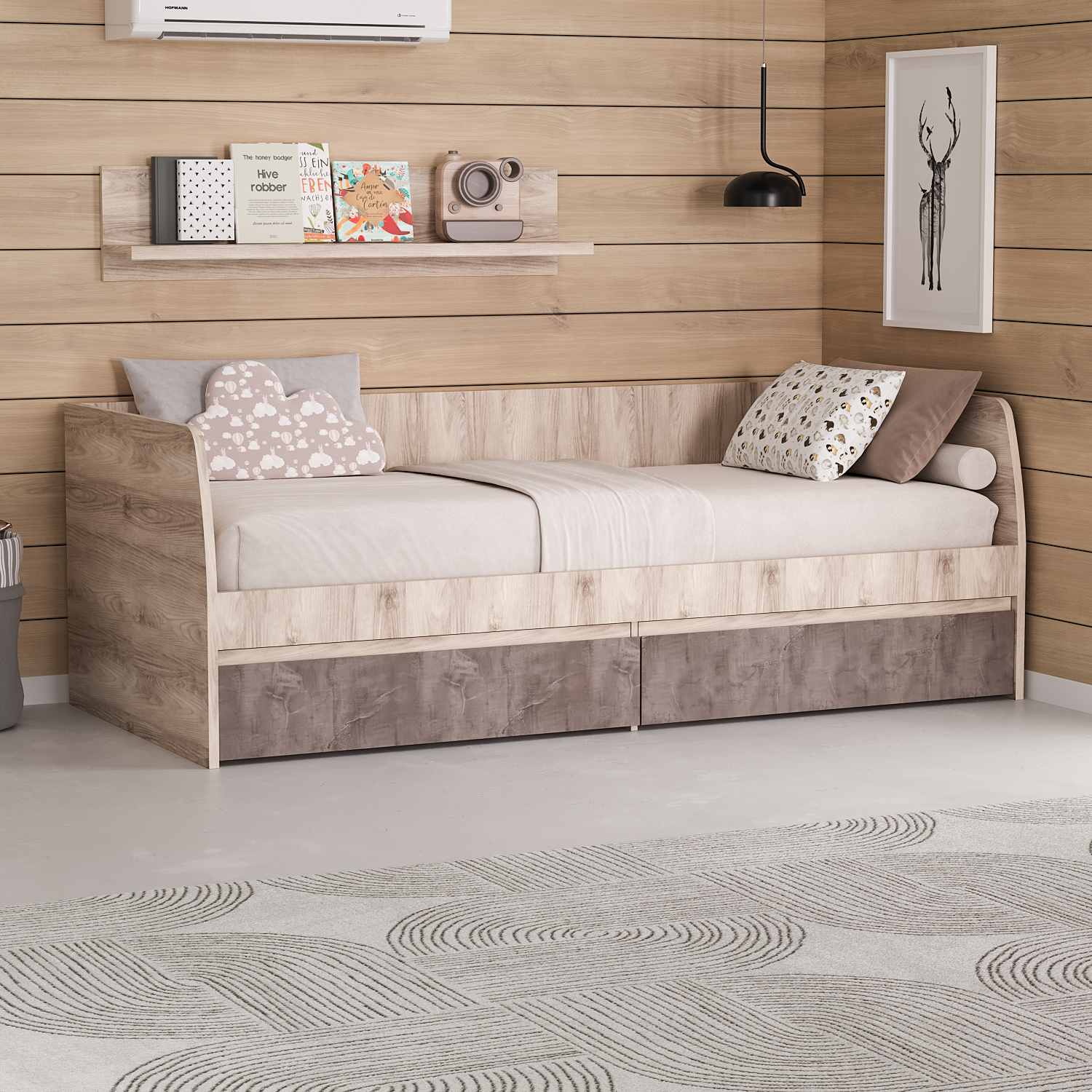 Кровать детская КР 2 выполнена в стильном и современном дизайне, идеально подходящем для любого интерьера. Она оснащена надежным основанием, которое обеспечит дополнительную поддержку матраса, а два выдвижных ящика подойдут для хранения постельного белья и личных вещей ребенка.