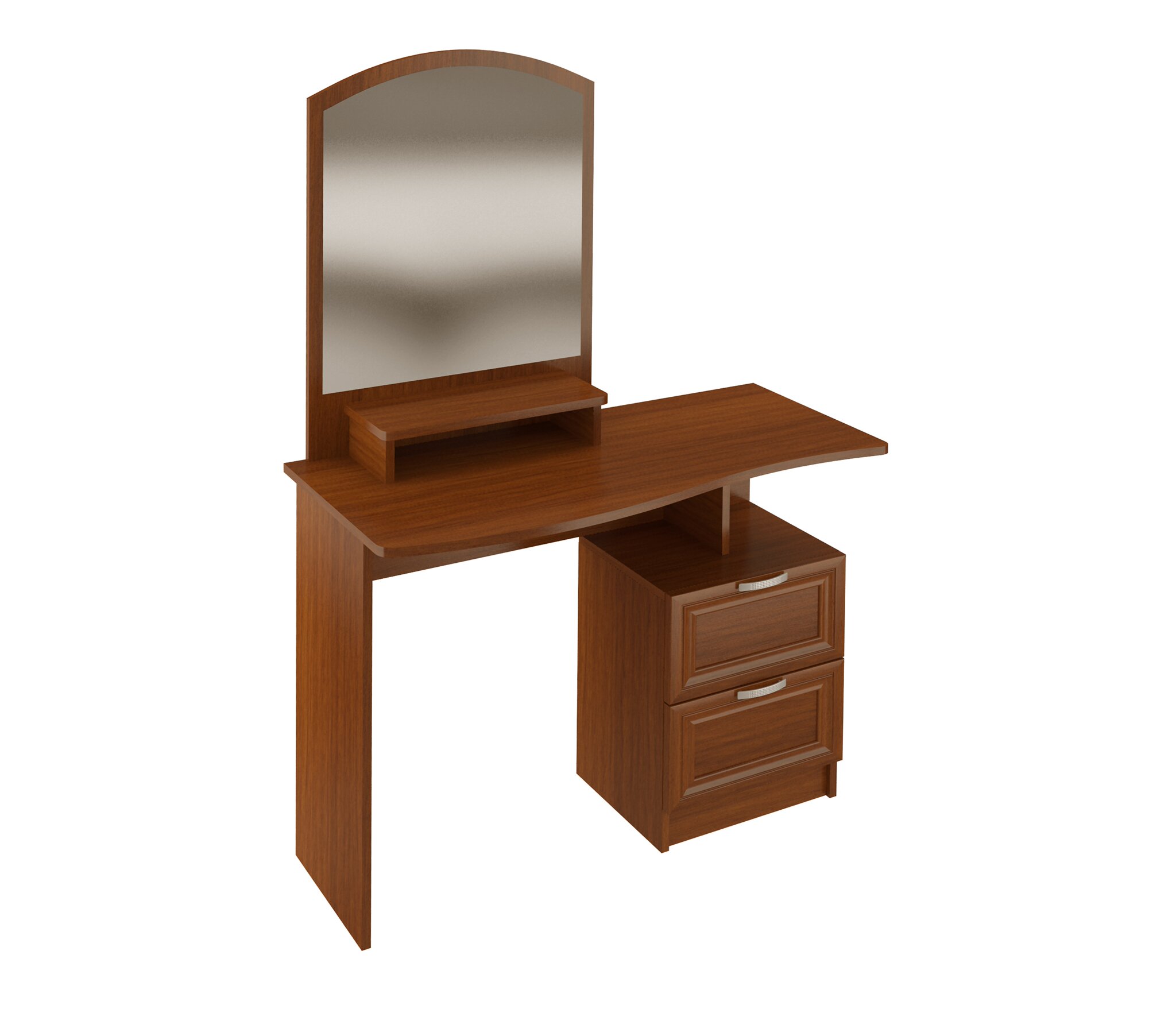 Корпус туалетного столика выполнен из Ламинированной ДСП высшего качества с насыщенным цветом. Рамка фасадов в плёнке МДФ.В комплект входит вся необходимая фурнитура.Удобный и функциональный в использовании.С двумя выдвижными ящиками.