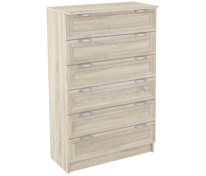 Комод ВС 6 удобен в использовании благодаря размерам.Позволяет разместить множество вещей.Оснащён 6-ю одинаковыми по размеру выдвижными ящиками.Корпус ЛДСП,фасады рамочные МДФ.Производитель оставляет за собой право менять фурнитуру.