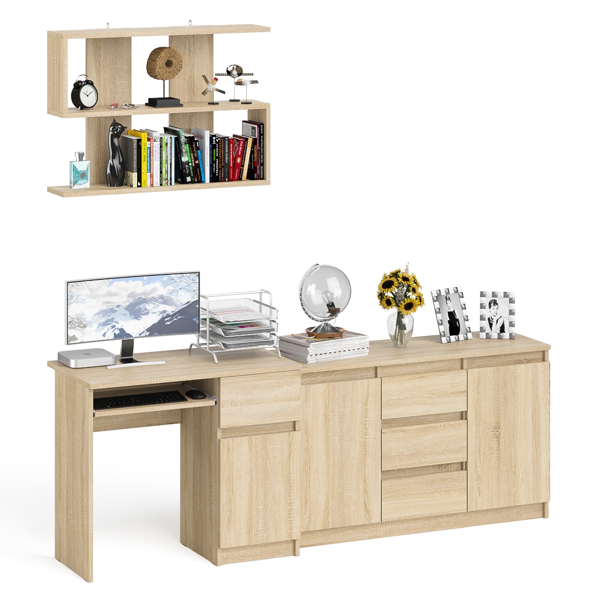 Компьютерный стол МС-1 тумба справа с комодом-тумбой и верхней открытой полкой Мори.
