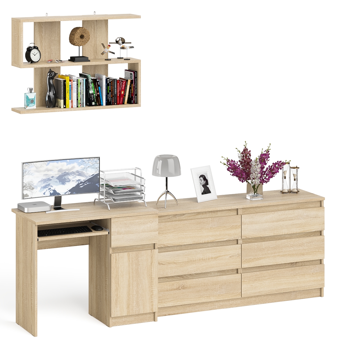 Отзывы о Столплит Комод шесть ящиков Мори МК1380.6 со столом с ящиком и дверкой справа и полка Дуб Сонома