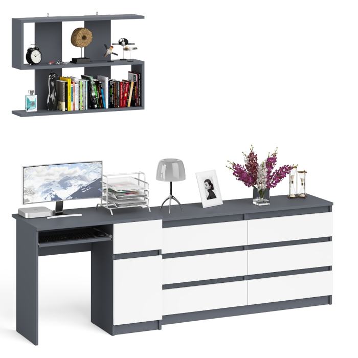Отзывы о Столплит Комод шесть ящиков Мори МК1380.6 со столом с ящиком и дверкой справа и полка Графит/Белый