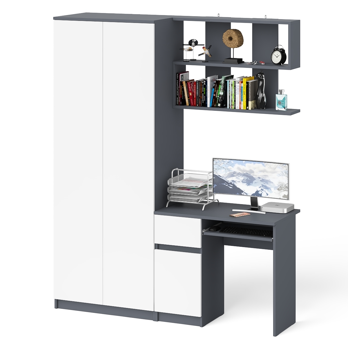 Отзывы о Столплит Стол компьютерный Мори МС-1 тумба слева с полкой навесной и шкафом две двери Графит/Белый