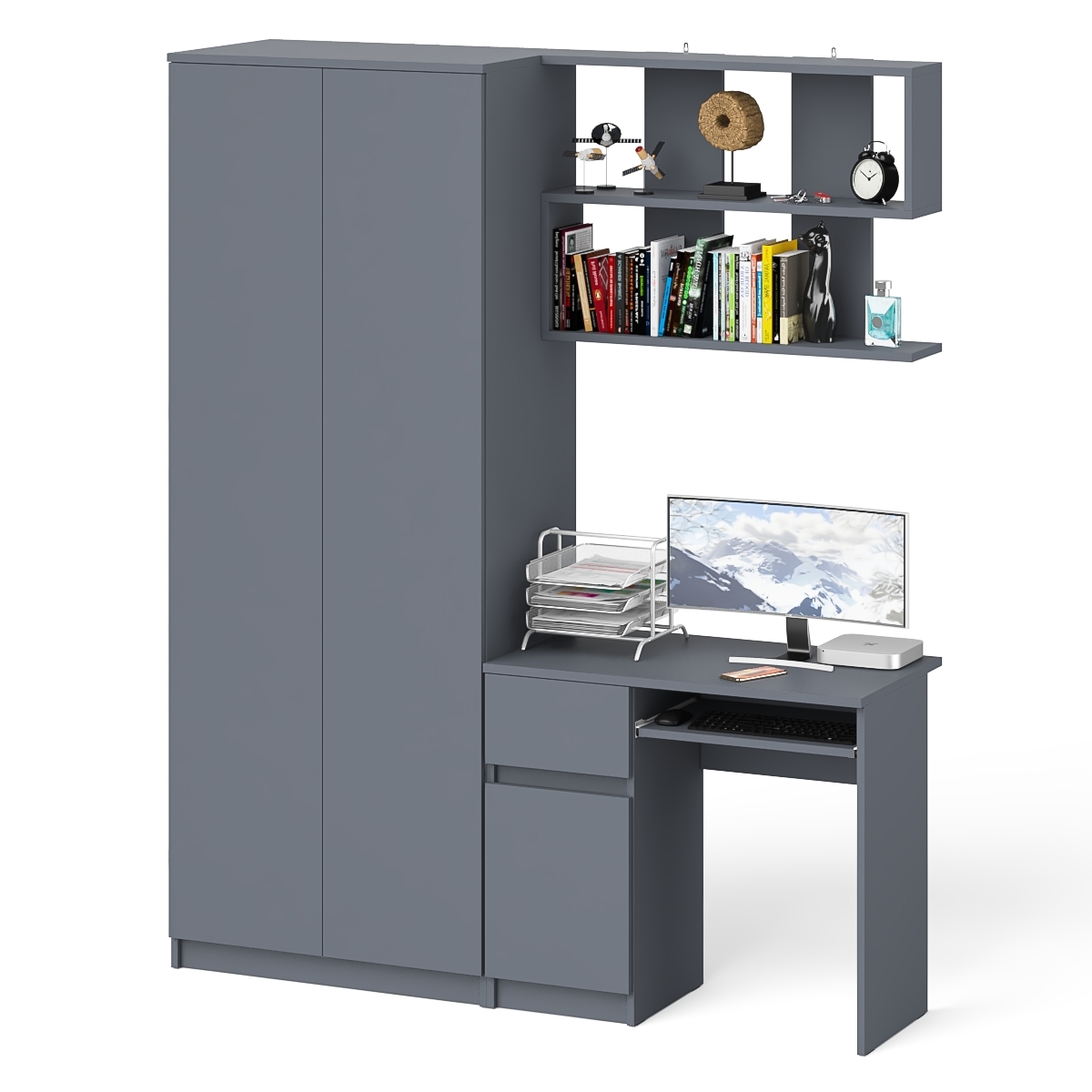 Отзывы о Столплит Стол компьютерный Мори МС-1 тумба слева с полкой навесной и шкафом две двери Графит