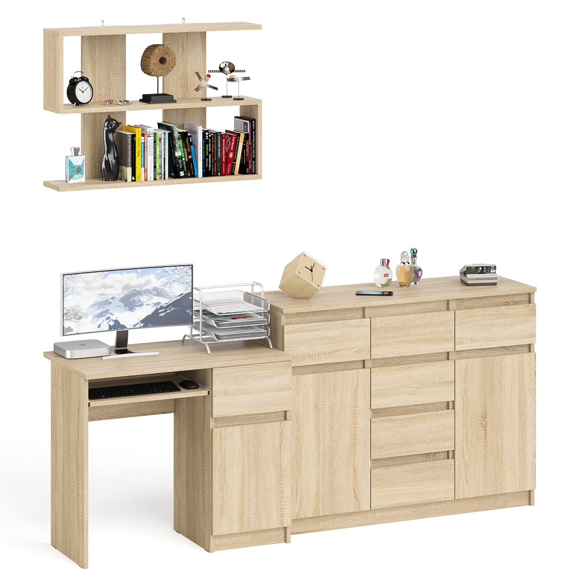 Отзывы о Столплит Тумба-комод Мори МК1200.4 с компьютерным столом МС-1 правый и открытой навесной полкой Дуб Сонома