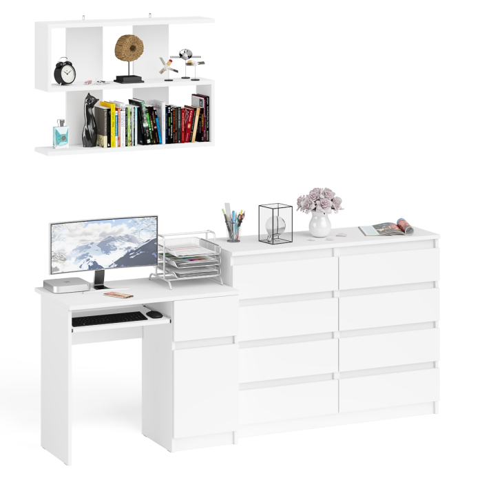 Большой комод на восемь выдвижных ящиков со столом МС-1 правый и полкой Мори 900.