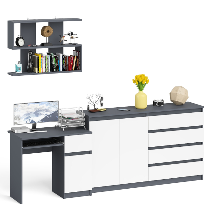 Выполнено в 5 цветах: белый, графит, графит/белый, дуб сонома и дуб сонома/белый.
