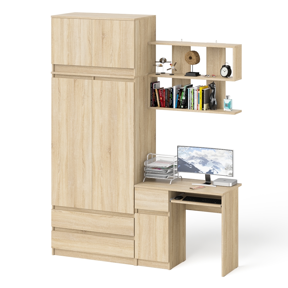 Отзывы о Столплит Стол однотумбовый Мори МС-1 левый с полкой навесной и комодом-шкафом с антресолью Дуб Сонома