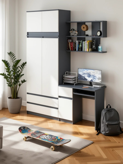 Выполнено в 5 цветах: белый, графит, графит/белый, дуб сонома и дуб сонома/белый.