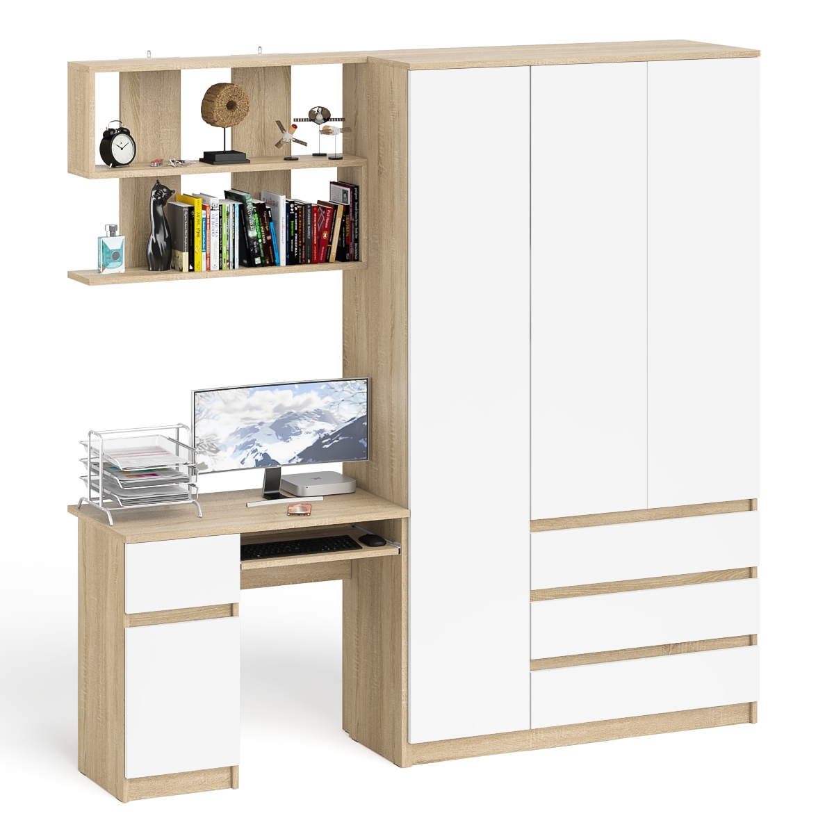 Выполнено в 5 цветах: белый, графит, графит/белый, дуб сонома и дуб сонома/белый.