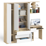 Отзывы о Столплит Широкий шкаф-комод Мори МШ1200.1 с письменным столом МС-1 левый и полкой на 900 Дуб сонома светлый/Белый