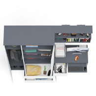 Особенности: ящик слева, выдвижная полка для клавиатуры.