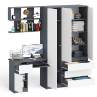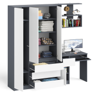 Отзывы о Столплит Широкий шкаф-комод Мори МШ1200.1 с письменным столом МС-1 левый и полкой на 900 Графит/Белый