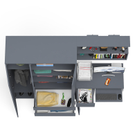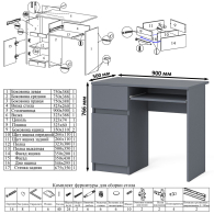 Особенности: ящик слева, выдвижная полка для клавиатуры.
