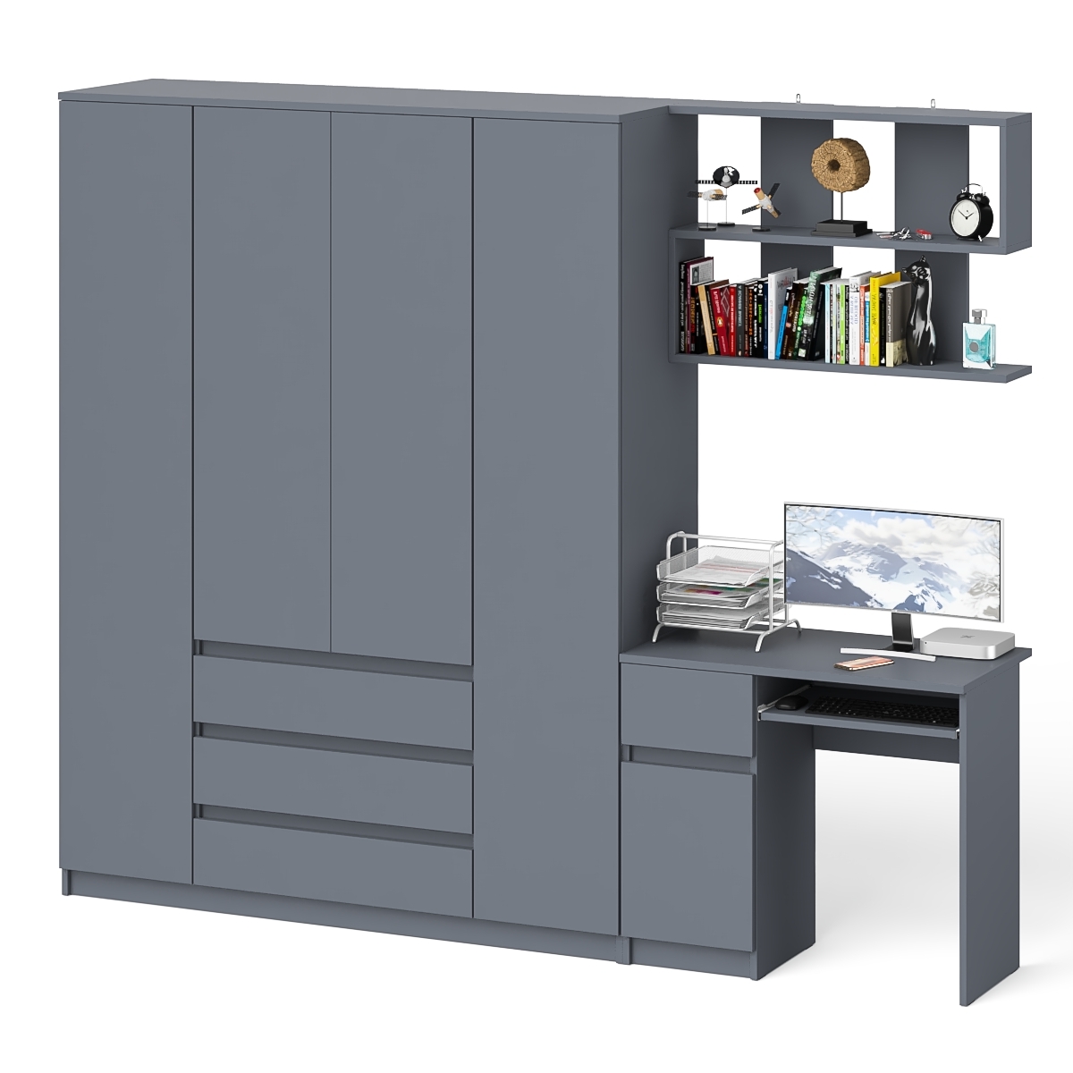 Отзывы о Столплит Четырёх-дверный шкаф-комод Мори МШ1600.1 с компьютерным столом МС-1 тумба слева и верхней полкой Графит