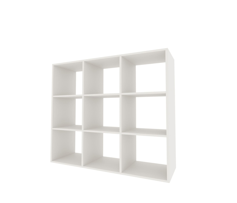 Стеллаж П-9 изготовлен из ламинированной ДСП 16 мм.Состоит из 12-ти равных отсеков кубической формы.Можно использовать как напольный элемент для разных целей.Высотой 1054 мм,шир 1054 мм и глуб 330 мм,он компактен и удобен в расположении.