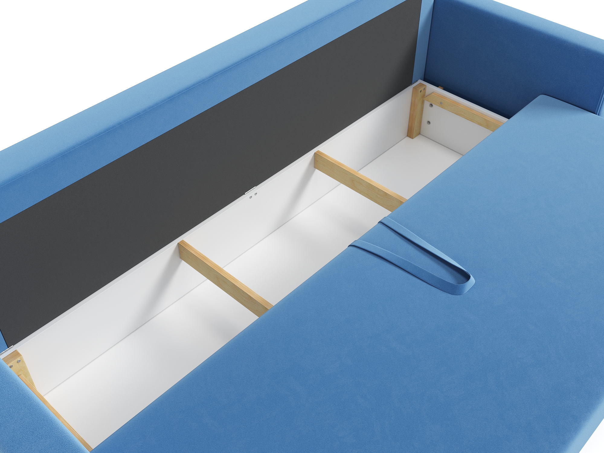- Механизм раскладки еврокнижка — это отличный выбор в пользу высокого качества, надежности и прочности. Нижняя часть дивана за счёт специальных роликов выдвигается вперед, верхняя — опускается на её место. Под сиденьем дивана находится короб для хранения вещей и постельных принадлежностей.