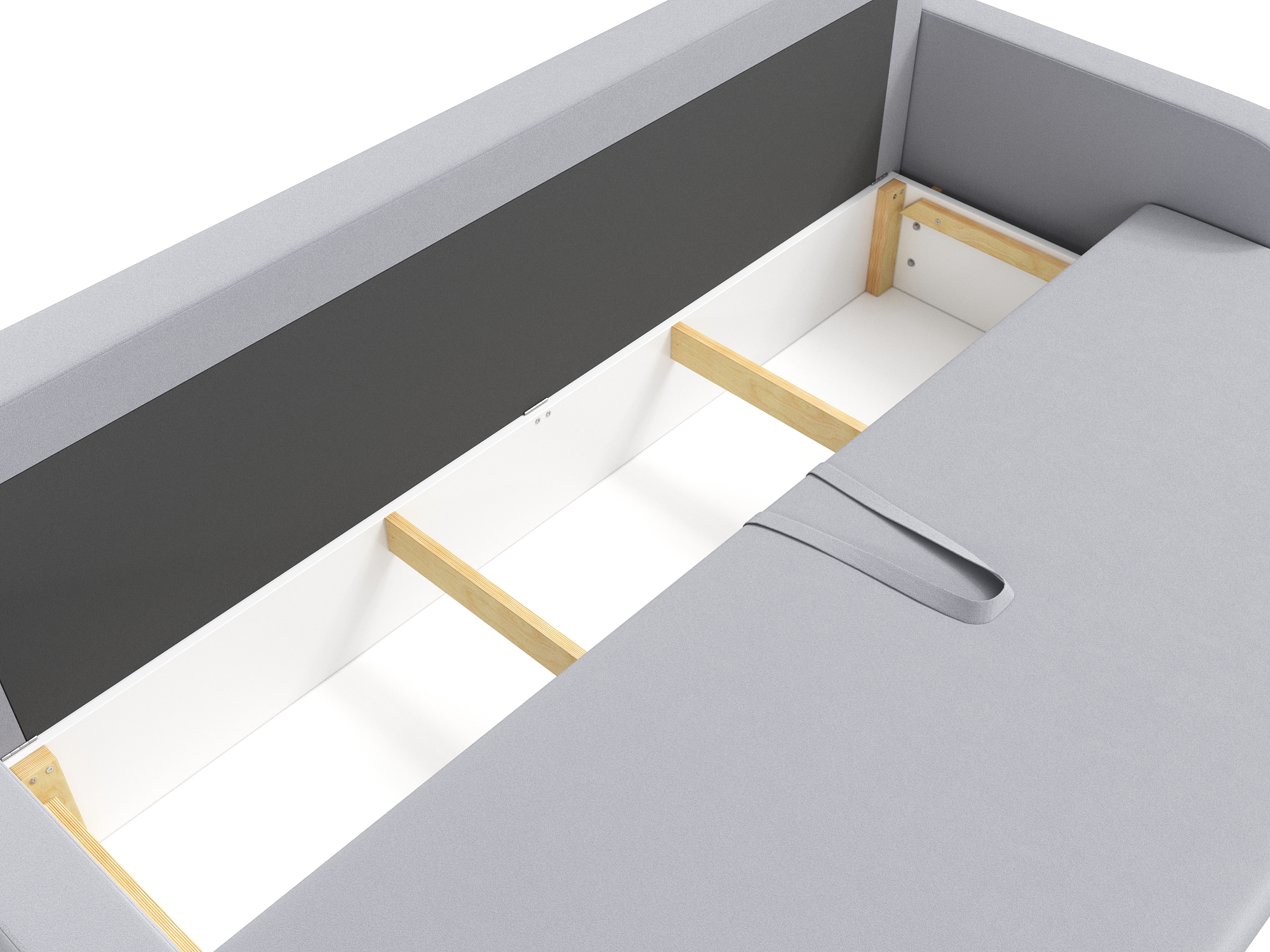 - Механизм раскладки еврокнижка — это отличный выбор в пользу высокого качества, надежности и прочности. Нижняя часть дивана за счёт специальных роликов выдвигается вперед, верхняя — опускается на её место. Под сиденьем дивана находится короб для хранения вещей и постельных принадлежностей.
