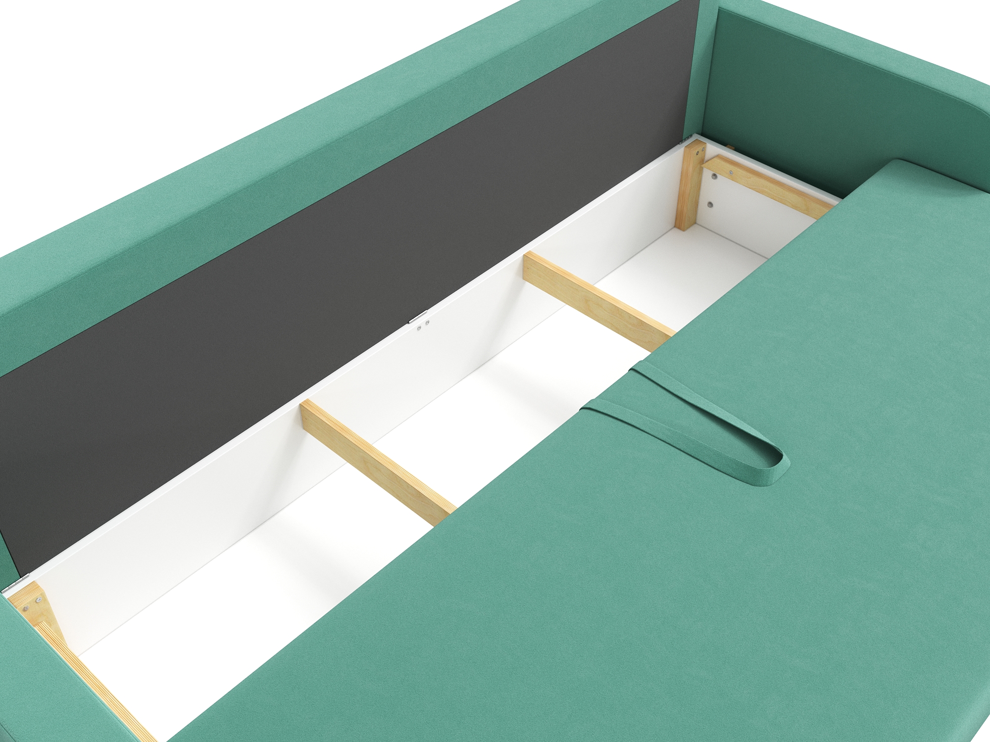 - Механизм раскладки еврокнижка — это отличный выбор в пользу высокого качества, надежности и прочности. Нижняя часть дивана за счёт специальных роликов выдвигается вперед, верхняя — опускается на её место. Под сиденьем дивана находится короб для хранения вещей и постельных принадлежностей.