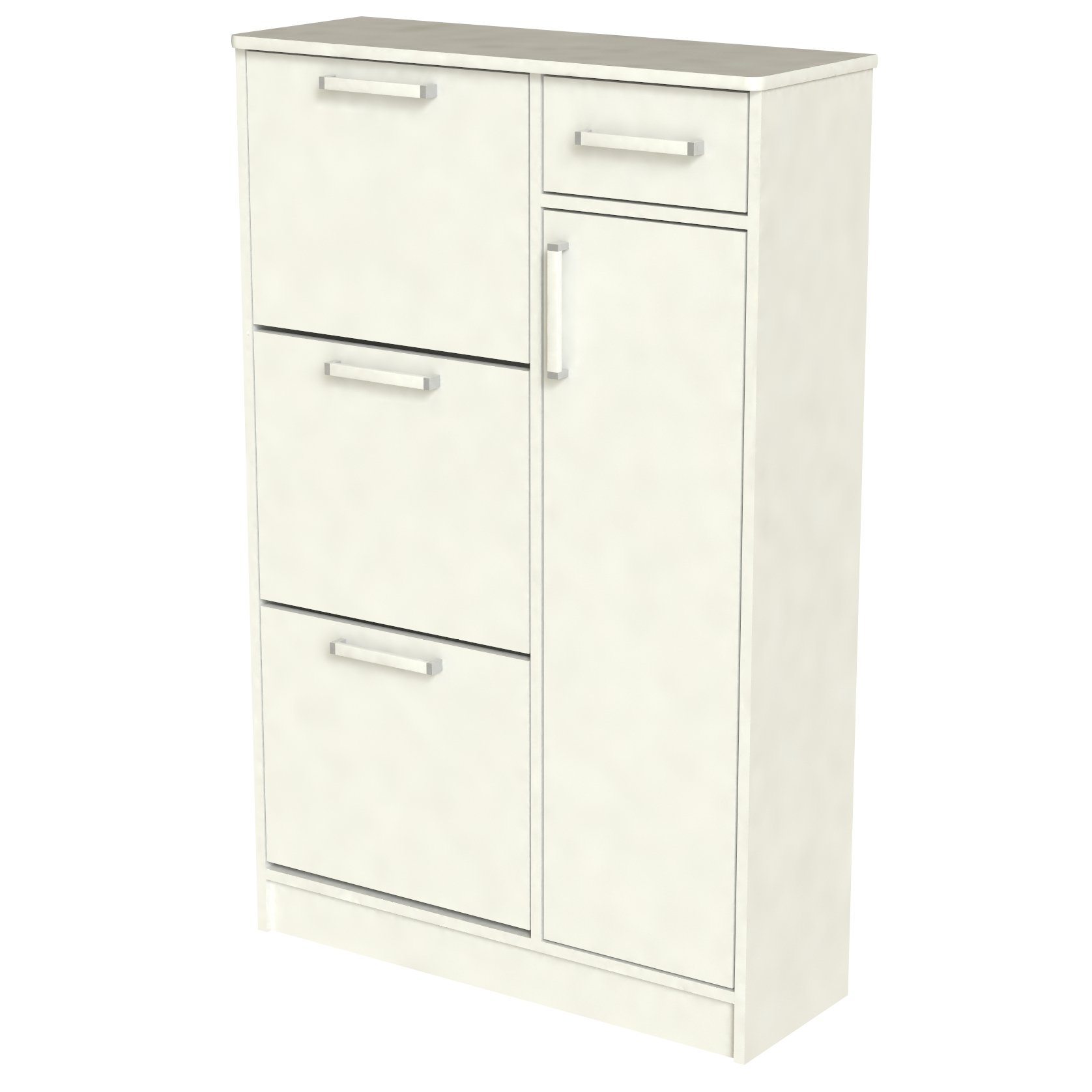 Обувница с максимальным количеством ящиков в классе. Она обладает тремя откидными нишами под обувь, выдвижным ящиком и распашной дверью со съемными полками.Тумба идеально встанет в Вашей прихожей и не займет много места.Корпус и фасады из качественного ЛДСП.Производитель оставляет за собой право менять фурнитуру.