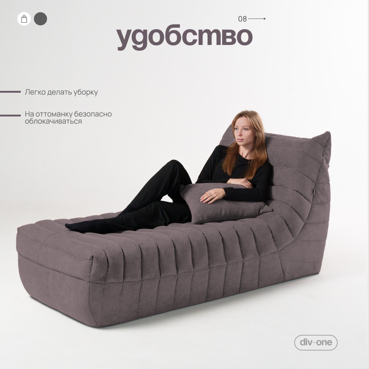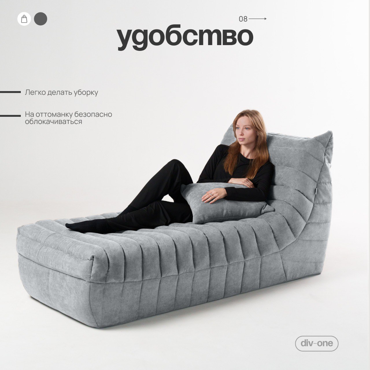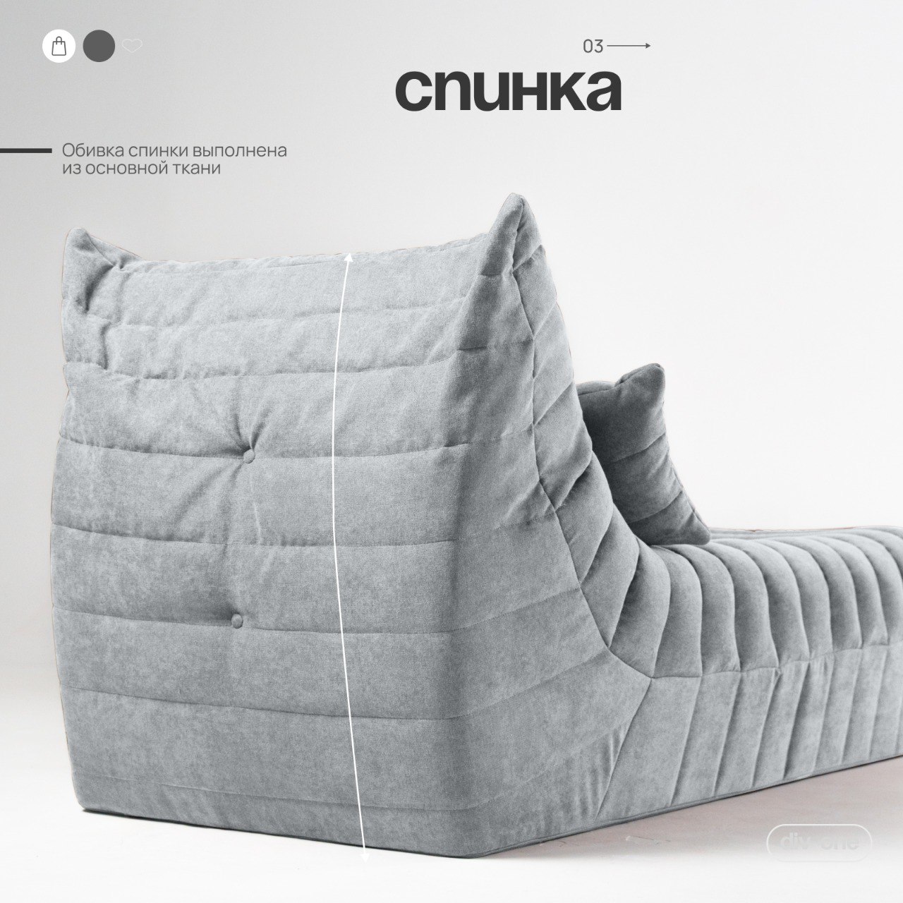 Мягкая обивка обеспечивает комфорт и удобство во время отдыха. Она выполнена из высококачественного Микрошенилла, который не только приятен на ощупь, но и легко чистится. Модуль имеет ортопедическую форму, которая поддерживает спину и обеспечивает комфорт во время отдыха.