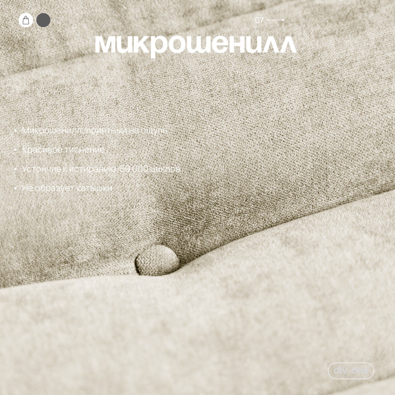 Мягкая обивка обеспечивает комфорт и удобство во время отдыха. Она выполнена из высококачественного Микрошенилла, который не только приятен на ощупь, но и легко чистится. Модуль имеет ортопедическую форму, которая поддерживает спину и обеспечивает комфорт во время отдыха.