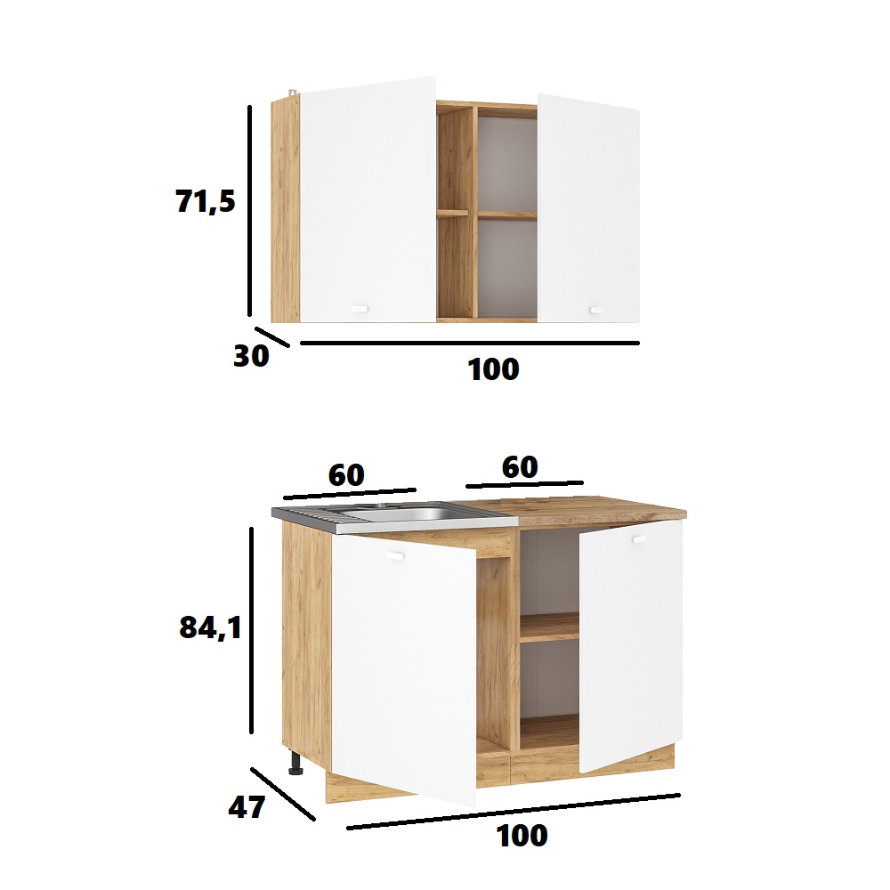 Дана – универсальный гарнитур для компактных кухонь и квартир-студий. Верхние модули: ШВ 1200 - (ВхГ) 71.5х30 см. Нижние модули: ШНМ 600-1, ШН 600-1 - (ВхГ) 84.1х47 см (высота указана с учётом столешницы). Декор столешницы – Дуб вотан 26 мм.
