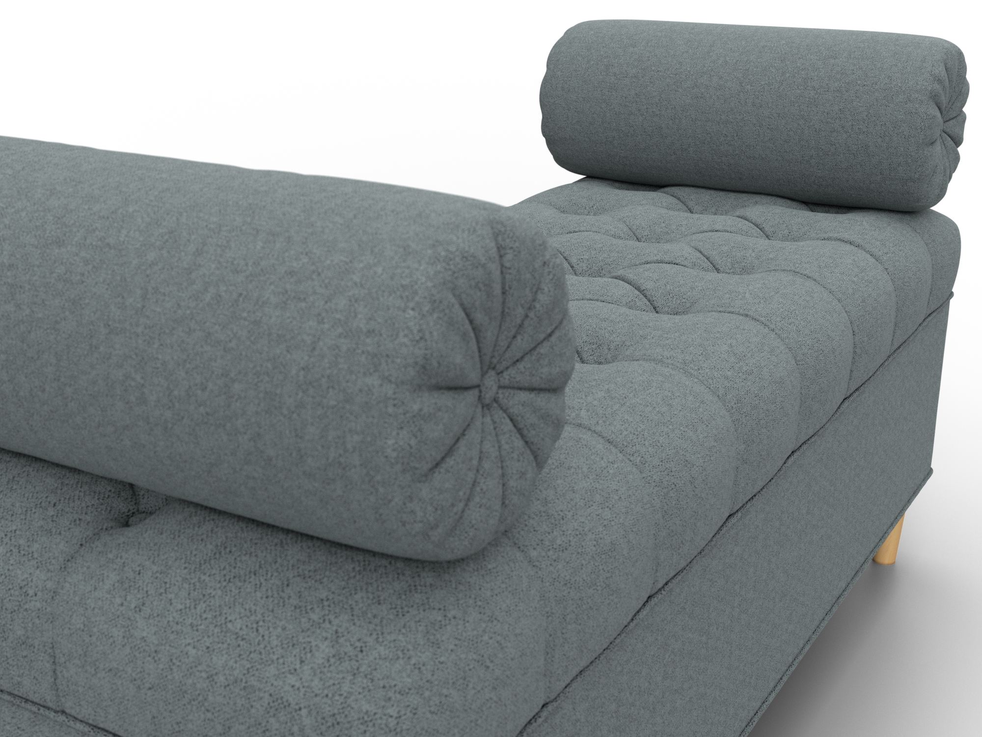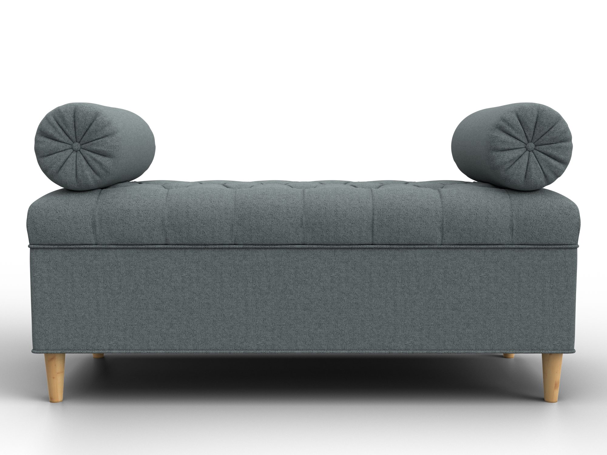 Глория – удлиненная банкетка без спинки, дополненная двумя боковыми пуфиками. Модель функциональна, подходит для размещения в спальне, гостиной и даже коридоре. Изделие можно приставить к кровати, либо поставить возле стенки в гардеробной.