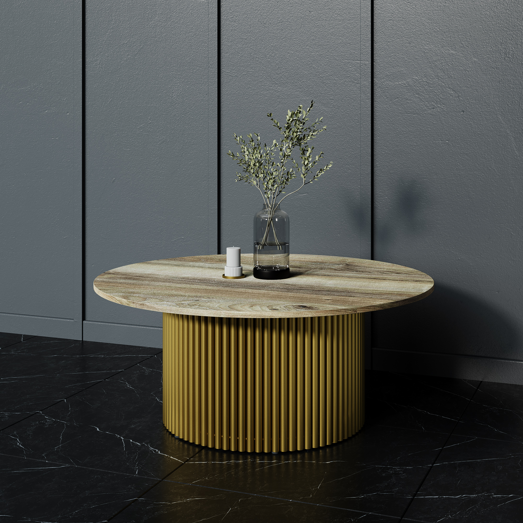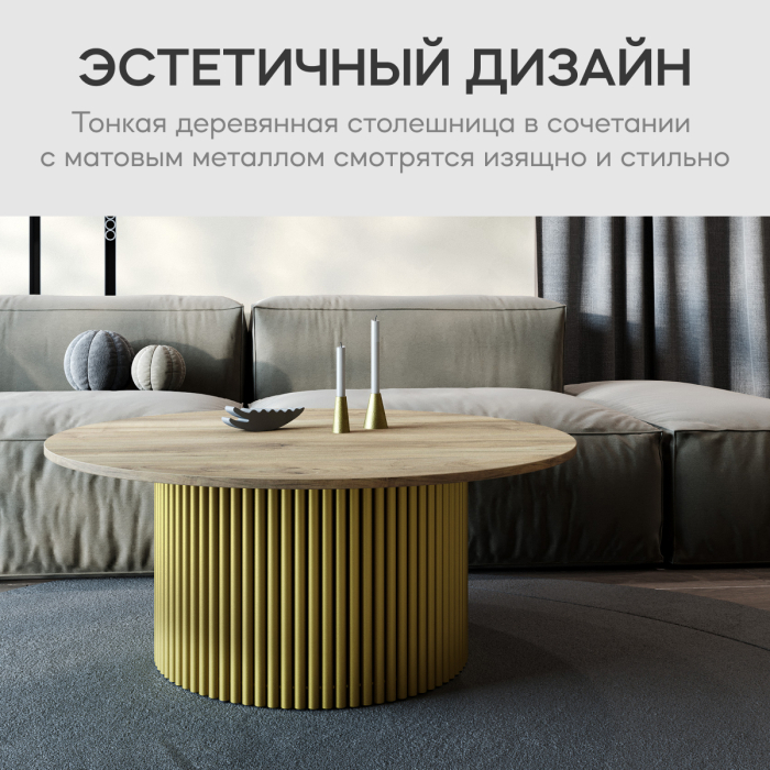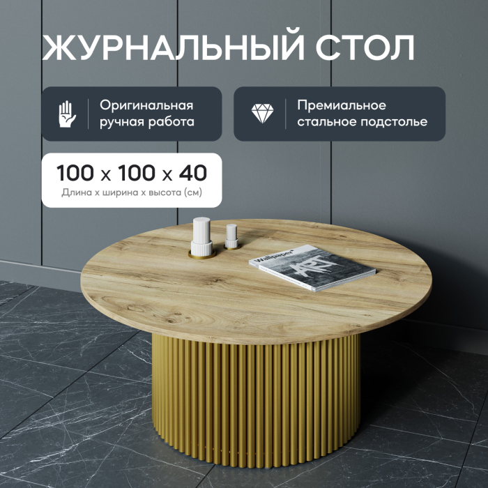 Отзывы о Столплит Стол круглый журнальный с металлическим золотым подстольем GENGLASS TRUBIS Wood M 100 Индийское дерево