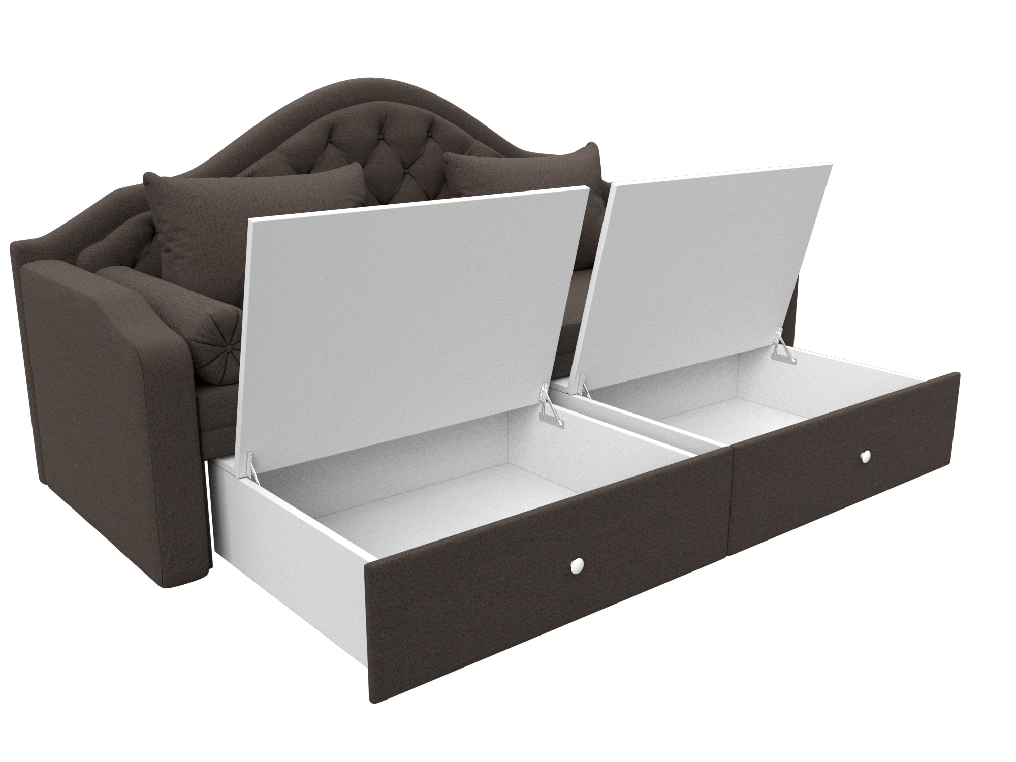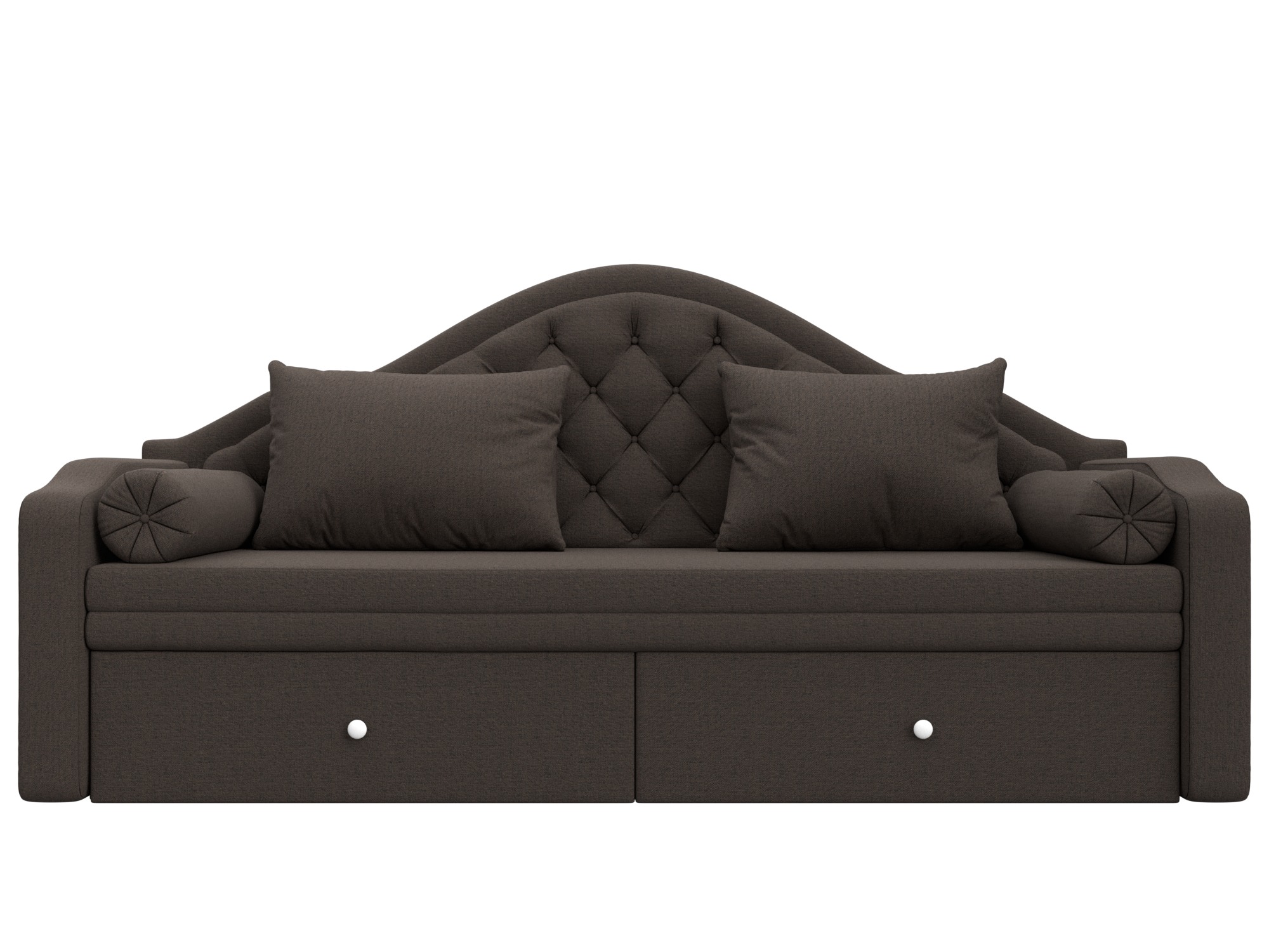 Сойер – прямой диван с выкатной системой трансформации, созданный в элегантном классическом дизайне. Модель дополняется двумя мягкими подушками и стильными валиками. В нижней части корпуса расположены 2 выдвижных ящика с хромированной фурнитурой.