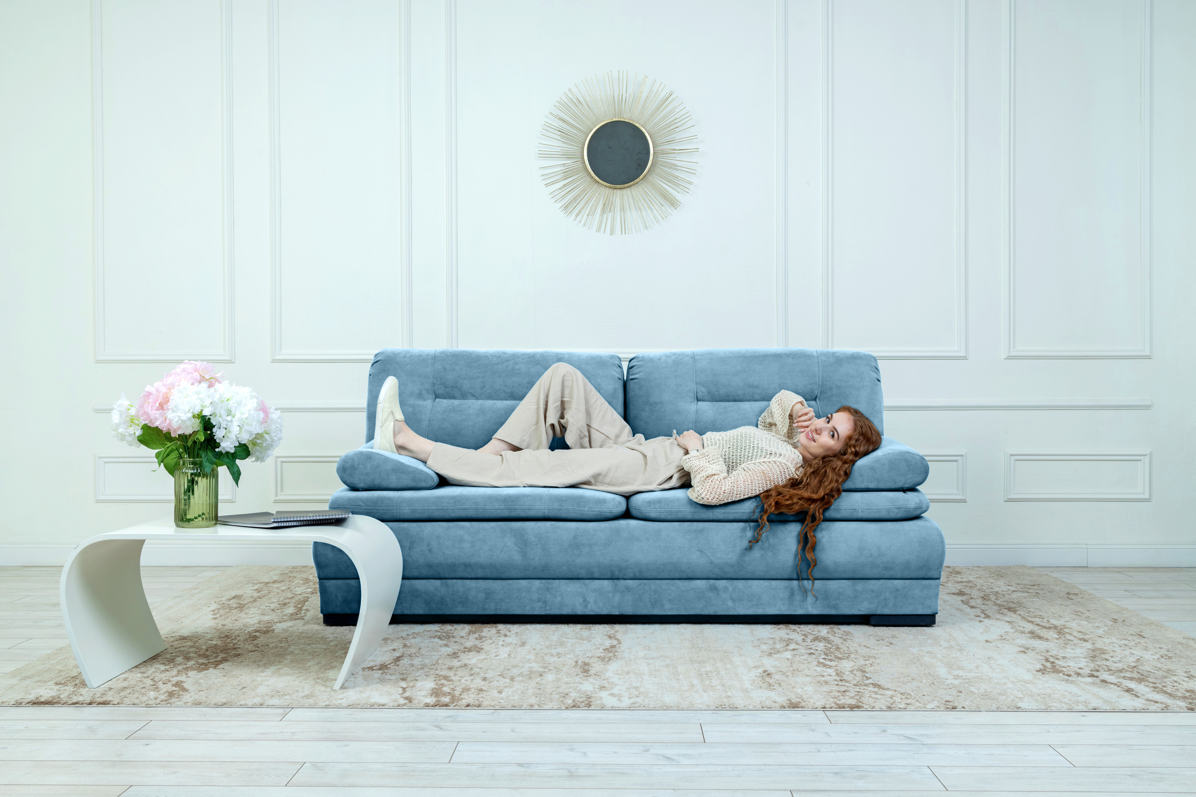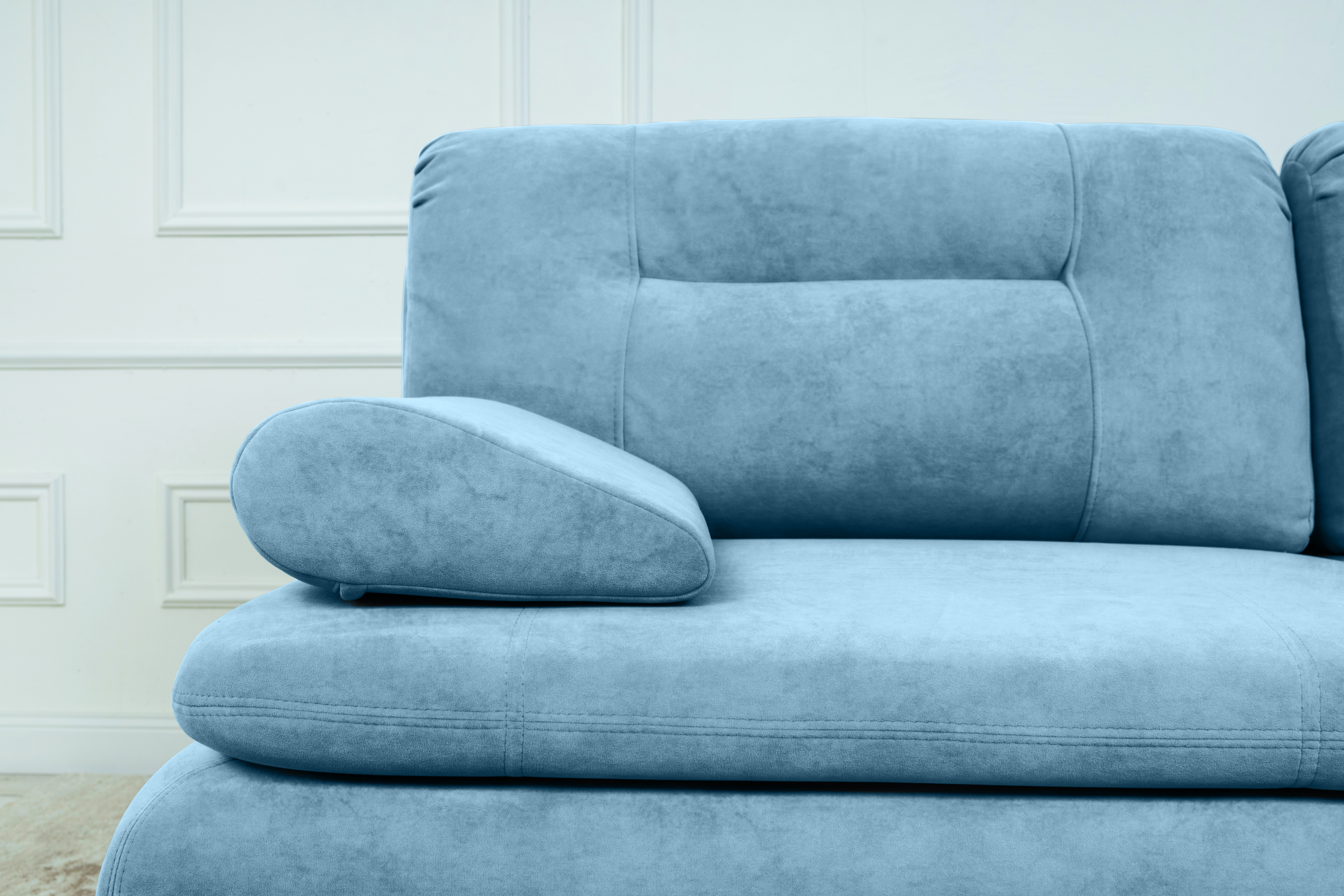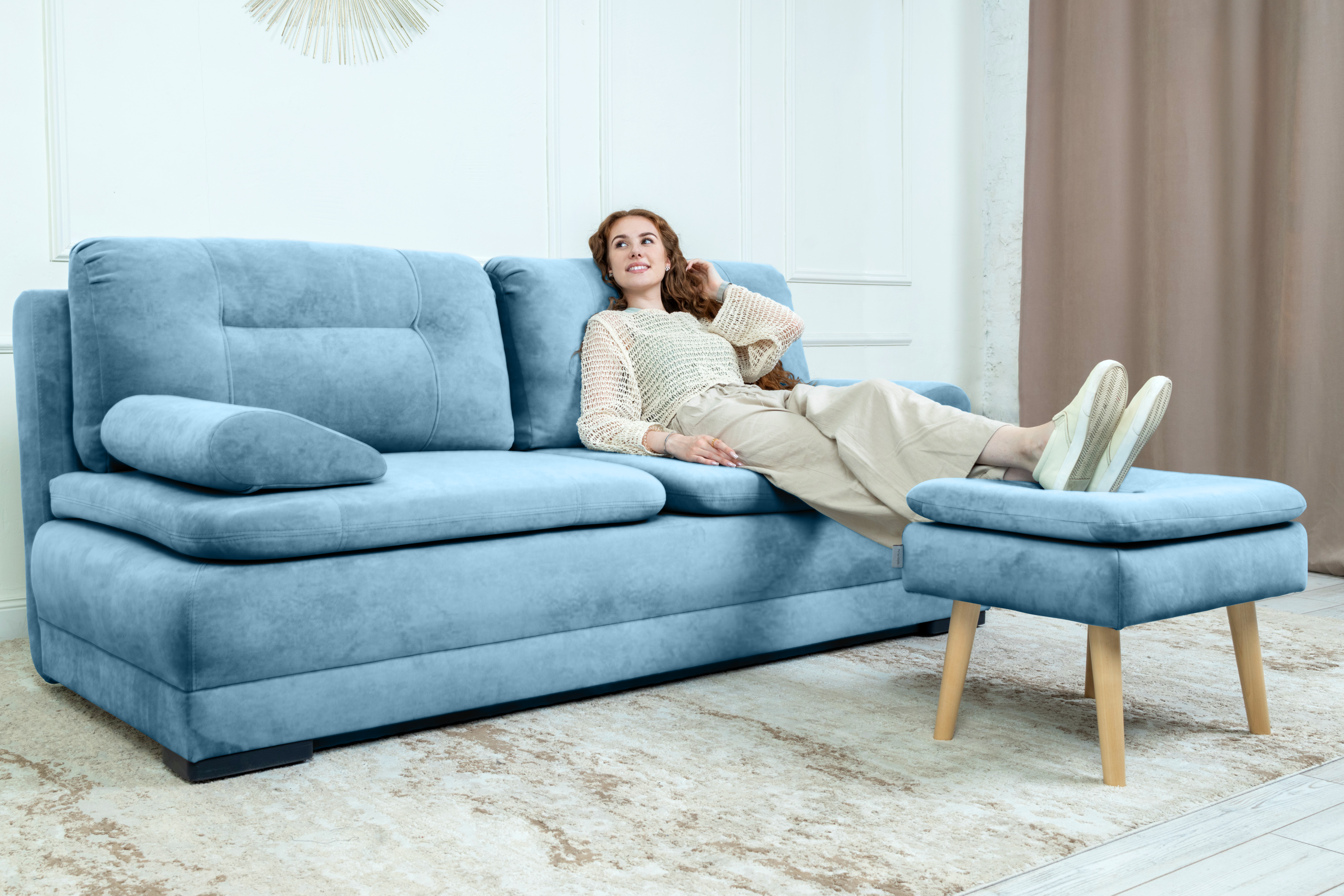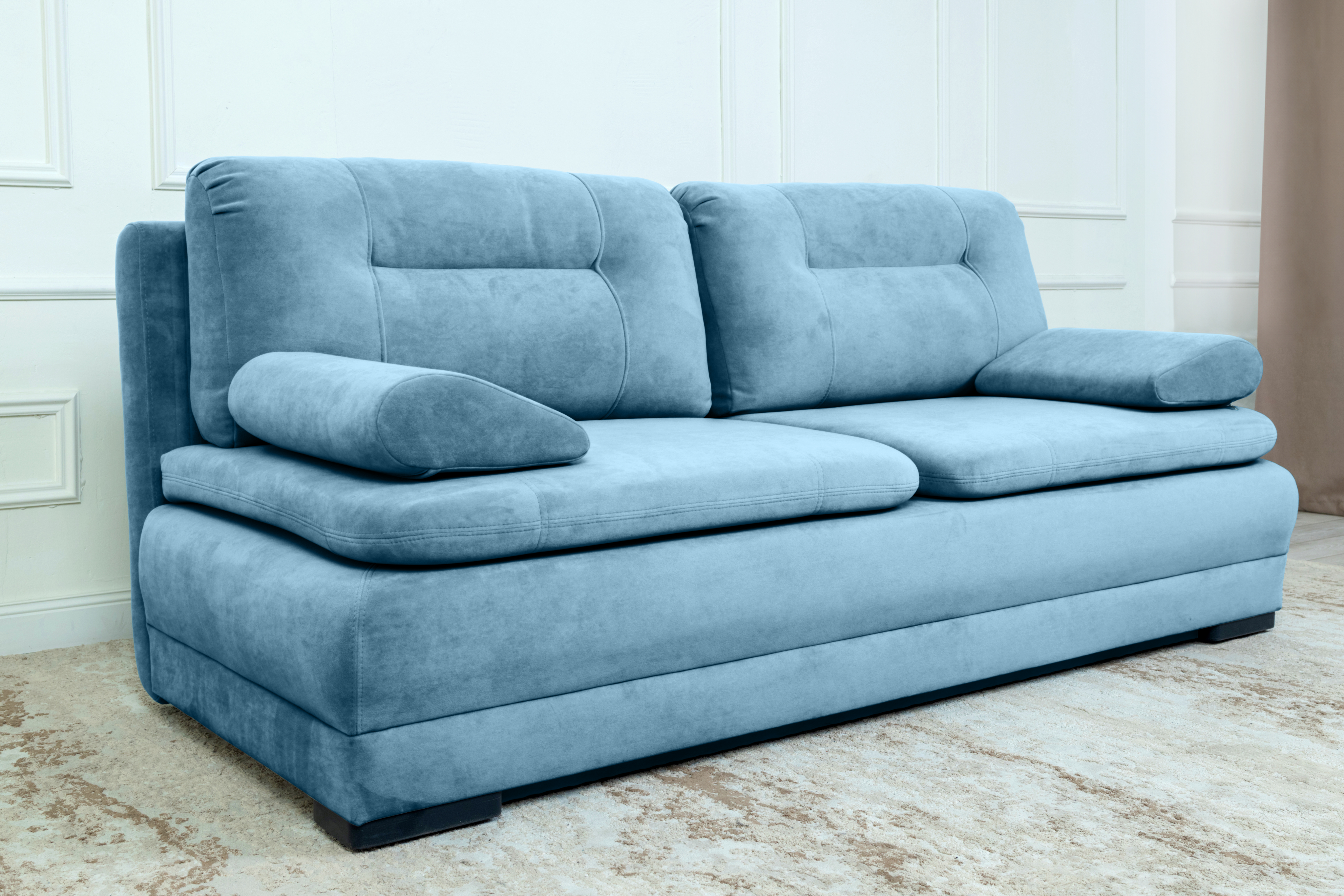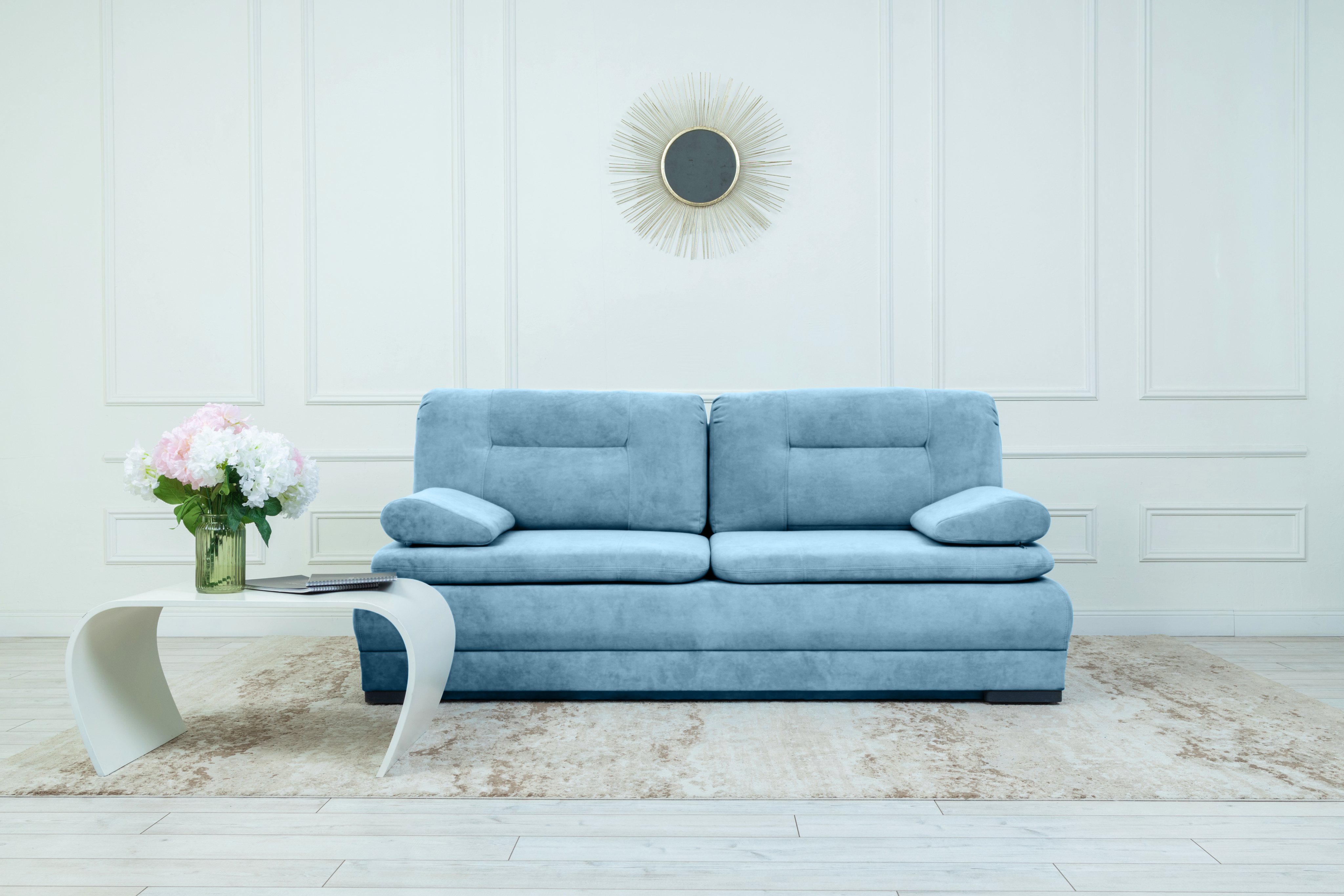 Прямой диван Sally, велюр (светло-синий)