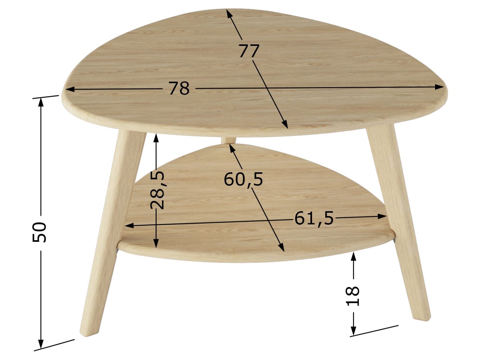 Столик имеет компактные размеры: длина 770 мм, ширина 780 мм, высота 500 мм.