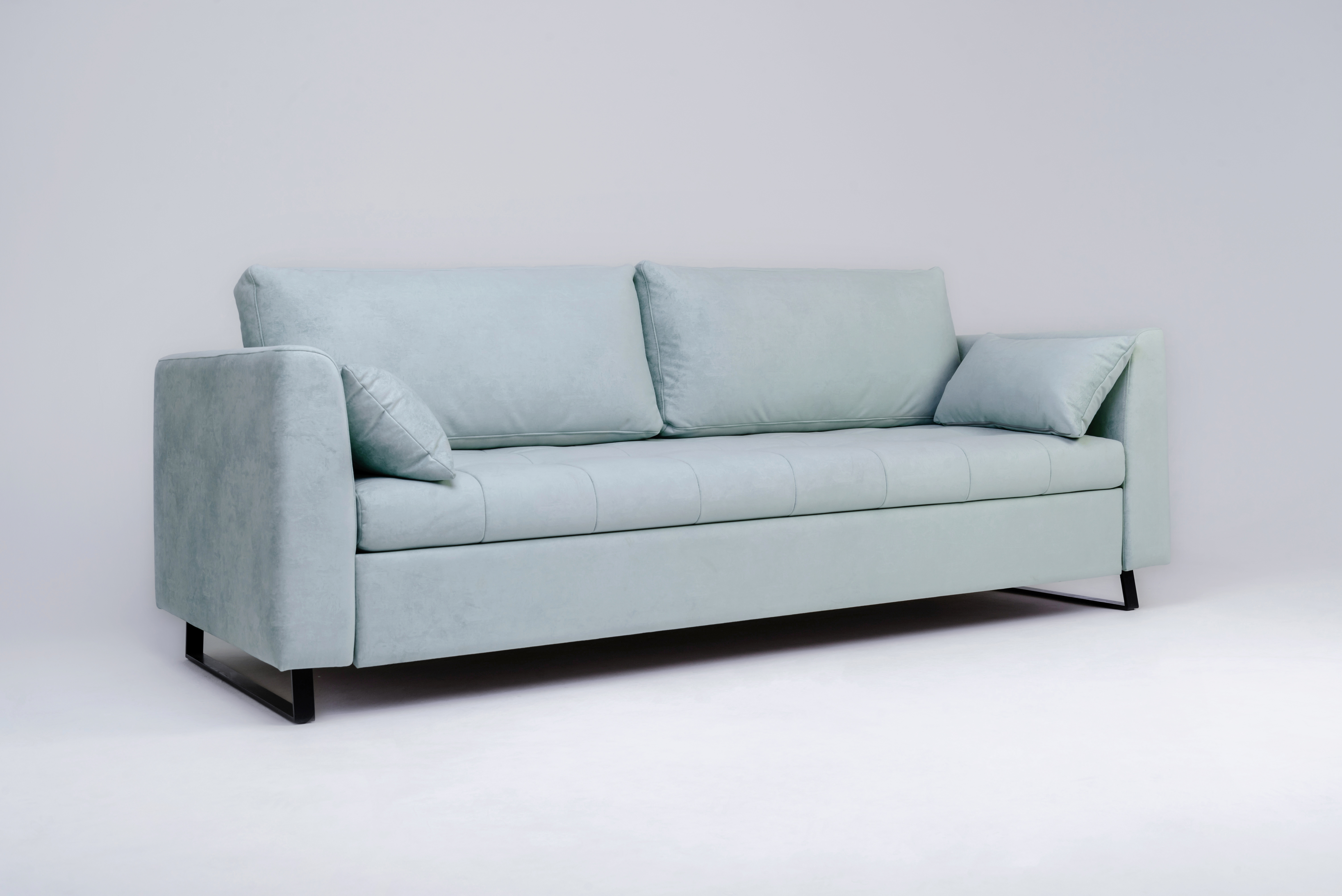 Механизм трансформации — шагающий (пантограф). Что позволяет использовать этот диван вместе с высокими коврами, и значительно упрощает раскладывание.