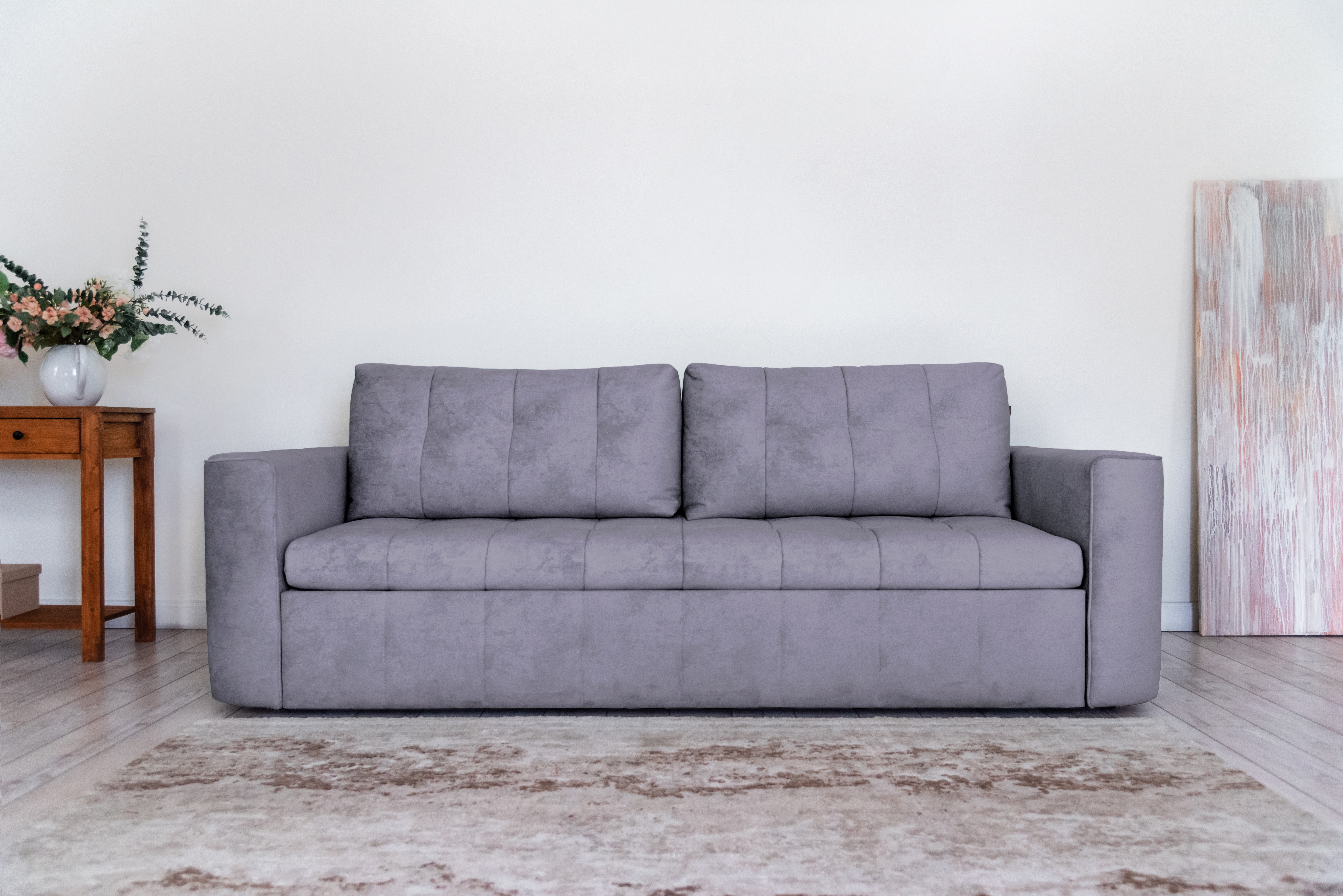 Стильный прямой диван BOSTON создан для тех, кому важна практичность и комфорт: надежный металлокаркас, мягкие ткани и быстрая трансформация в спальное место! Спинка защищает от соприкосновения со стеной во время сна.