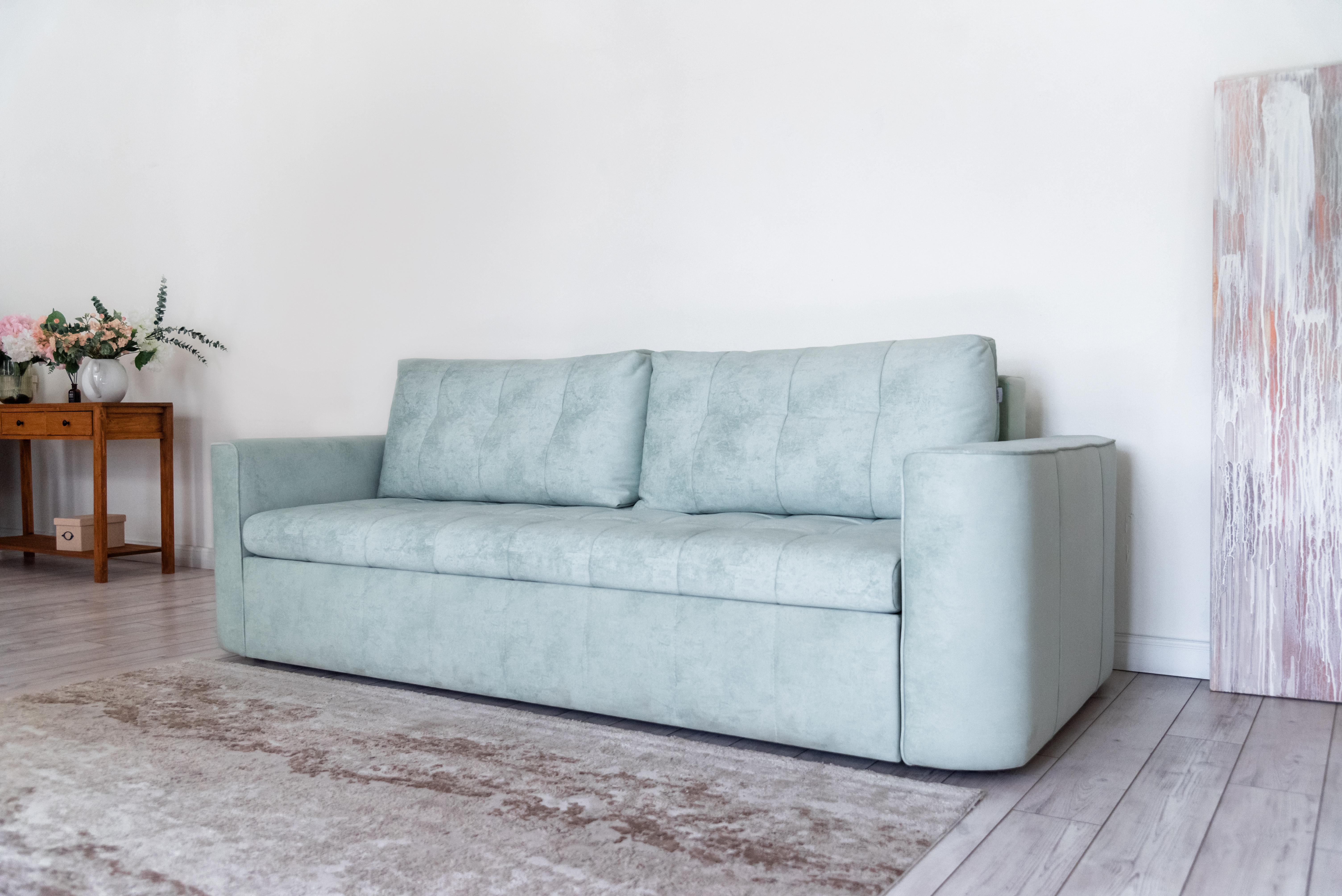 Стильный прямой диван BOSTON создан для тех, кому важна практичность и комфорт: надежный металлокаркас, мягкие ткани и быстрая трансформация в спальное место! Спинка защищает от соприкосновения со стеной во время сна.
