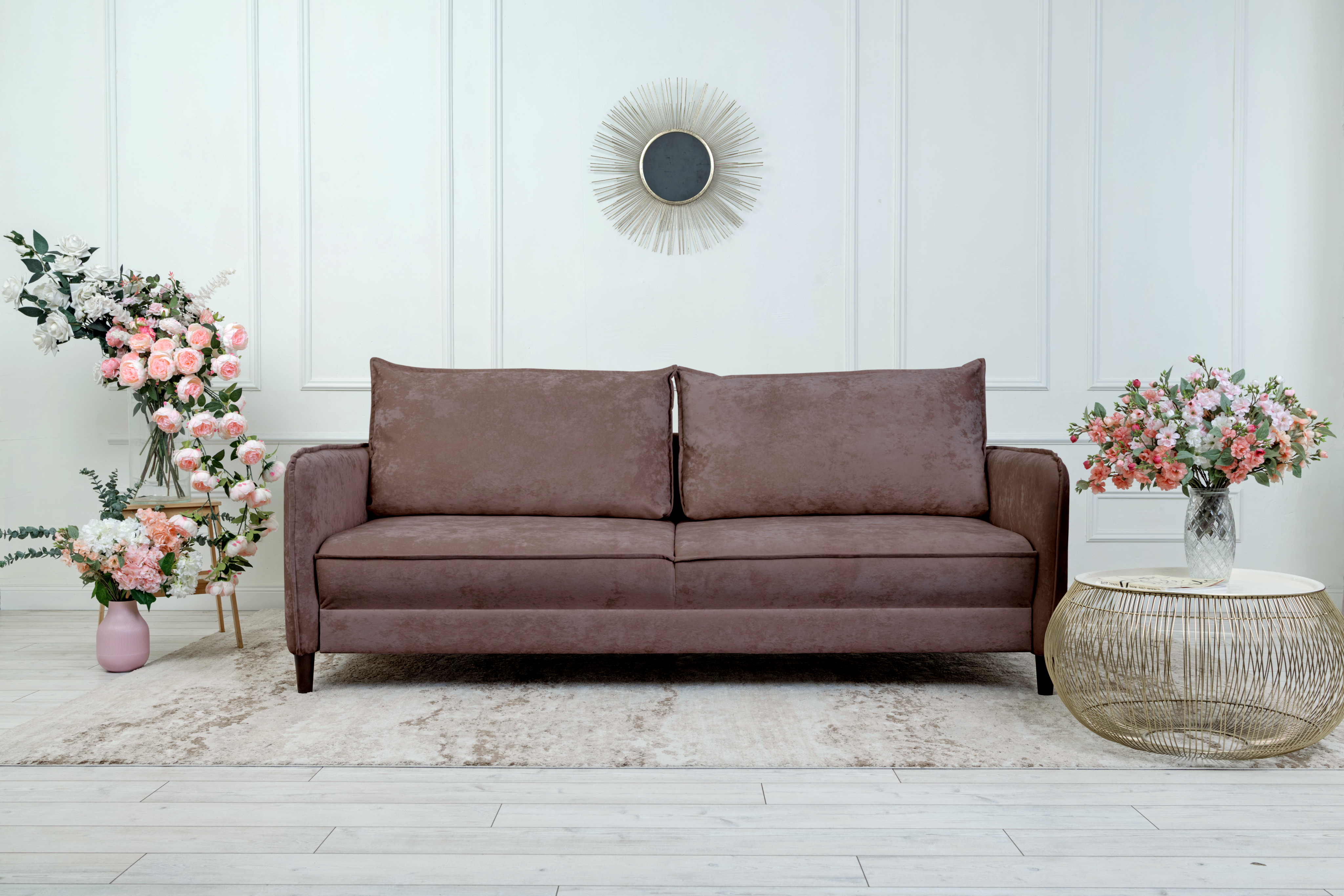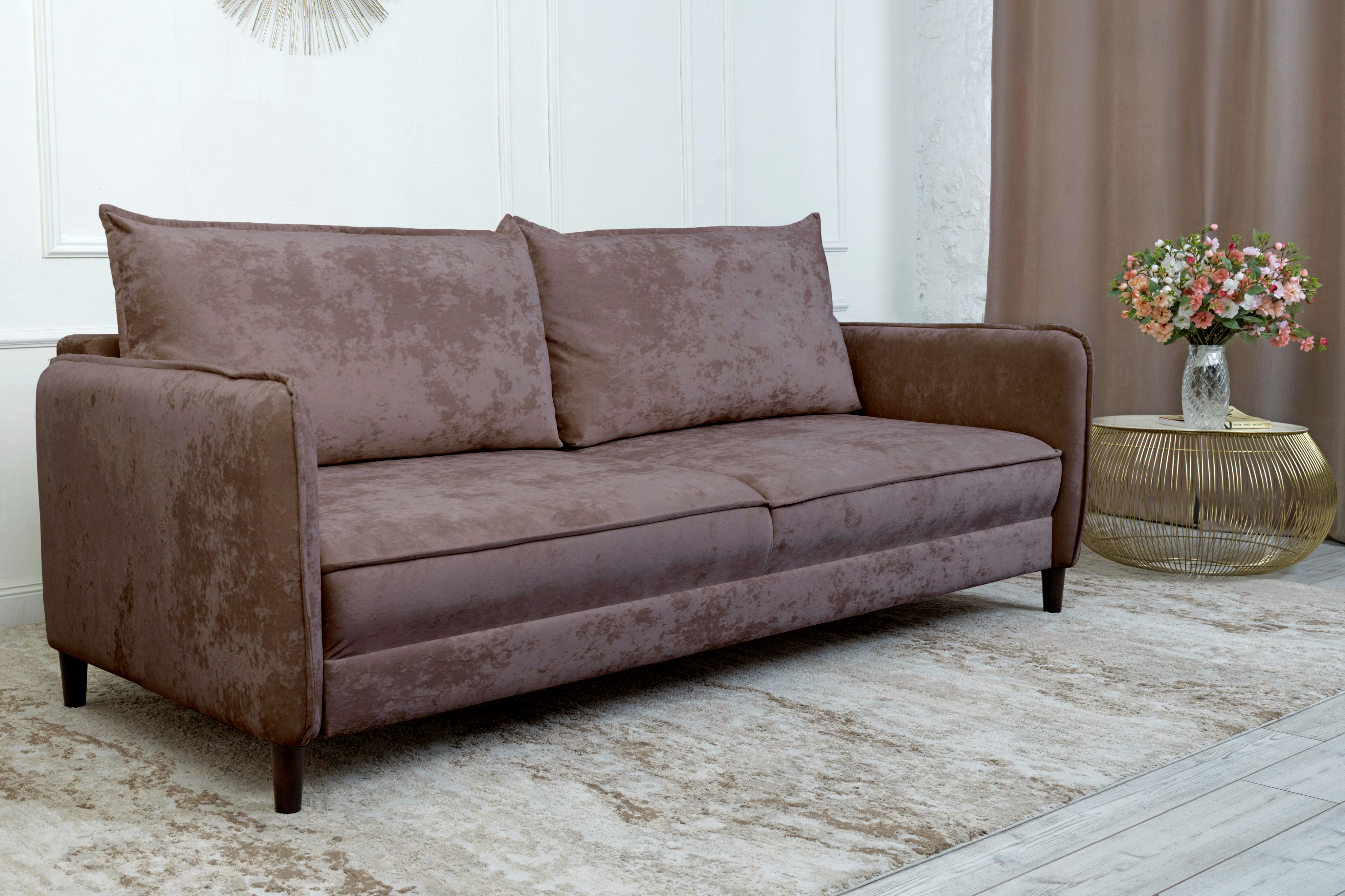 Прямой диван Nordwood, велюр (Коричневый)