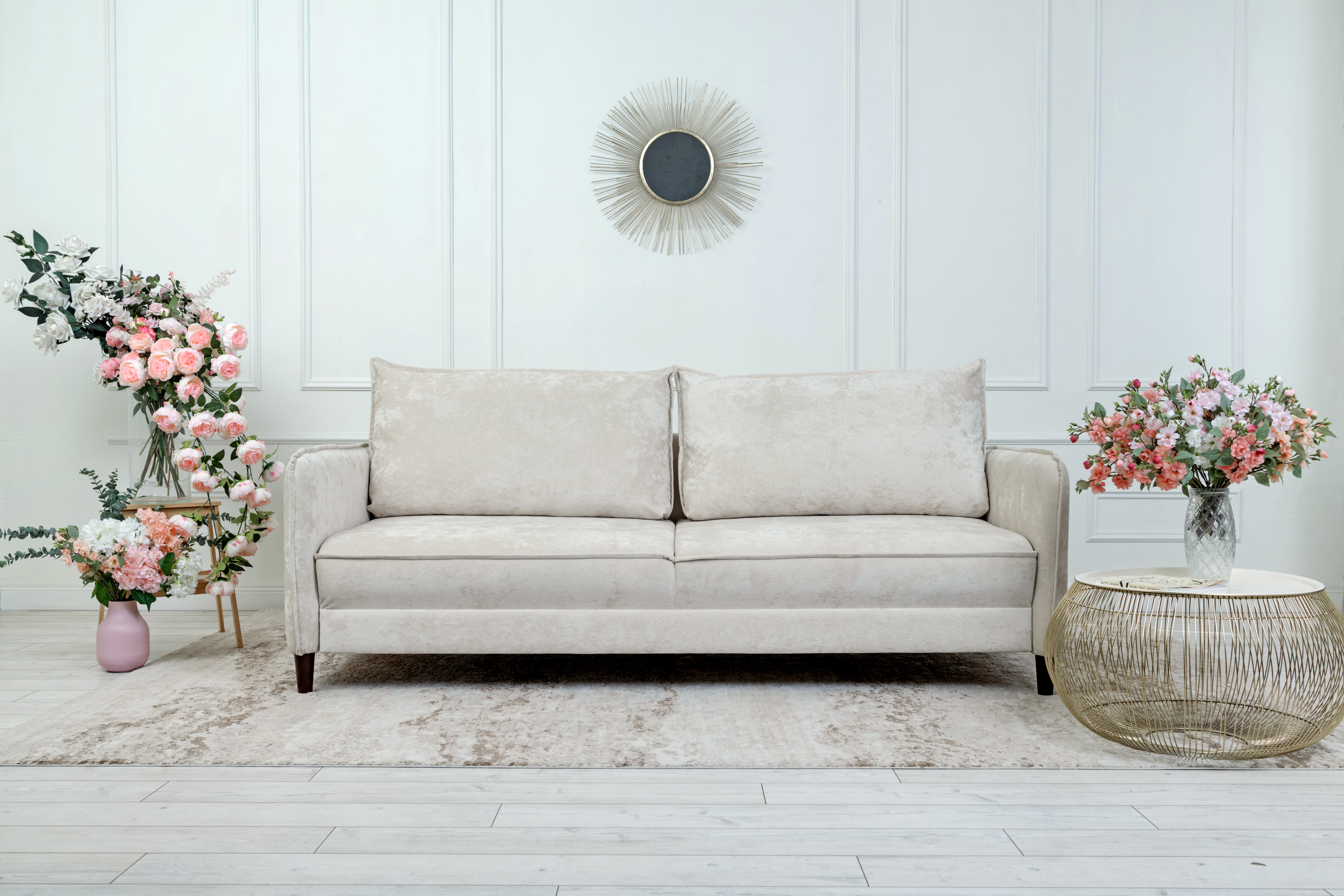 Прямой диван Nordwood, велюр (Светло-бежевый)