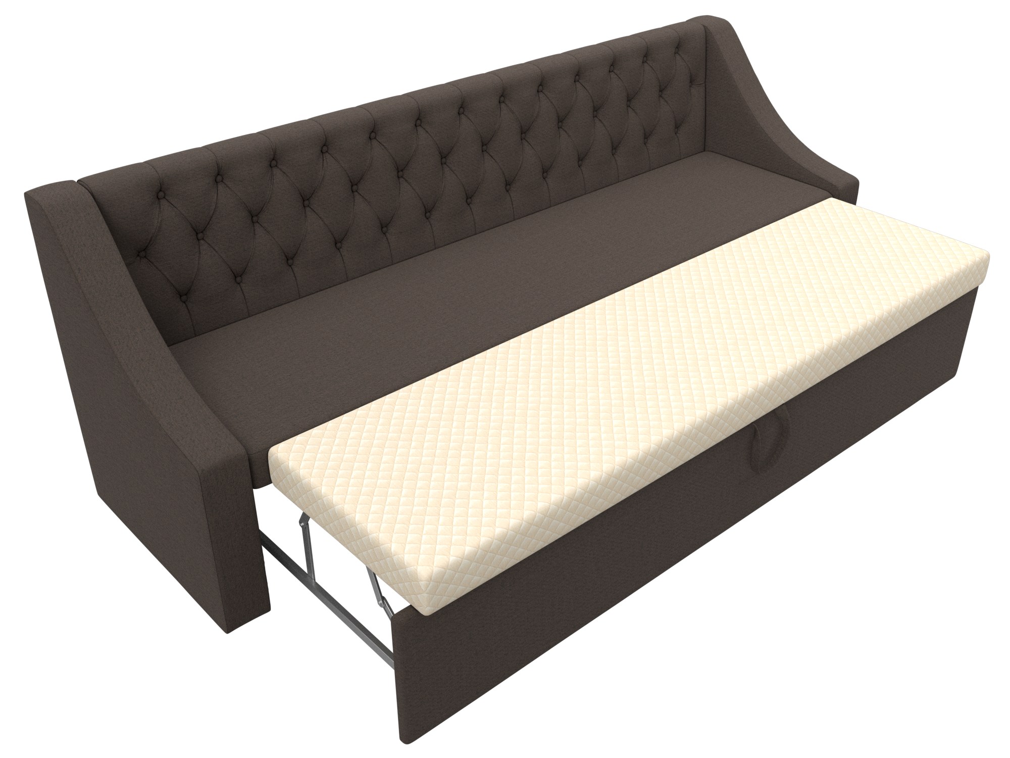 При компактных габаритах: 199х63х87 см подойдет для кухонных комнат любых размеров, легко раскладывается, обеспечивая спальное место 94х180 см.