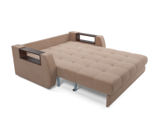 Особенностью модели являются встроенные в подлокотники, удобные полочки, выполненные из ЛДСП цвета темного Венге. Со встроенными полками можно сложить под рукой все необходимое и в одном месте — пульт от телевизора, наушники, зарядное устройство, стопку книг.